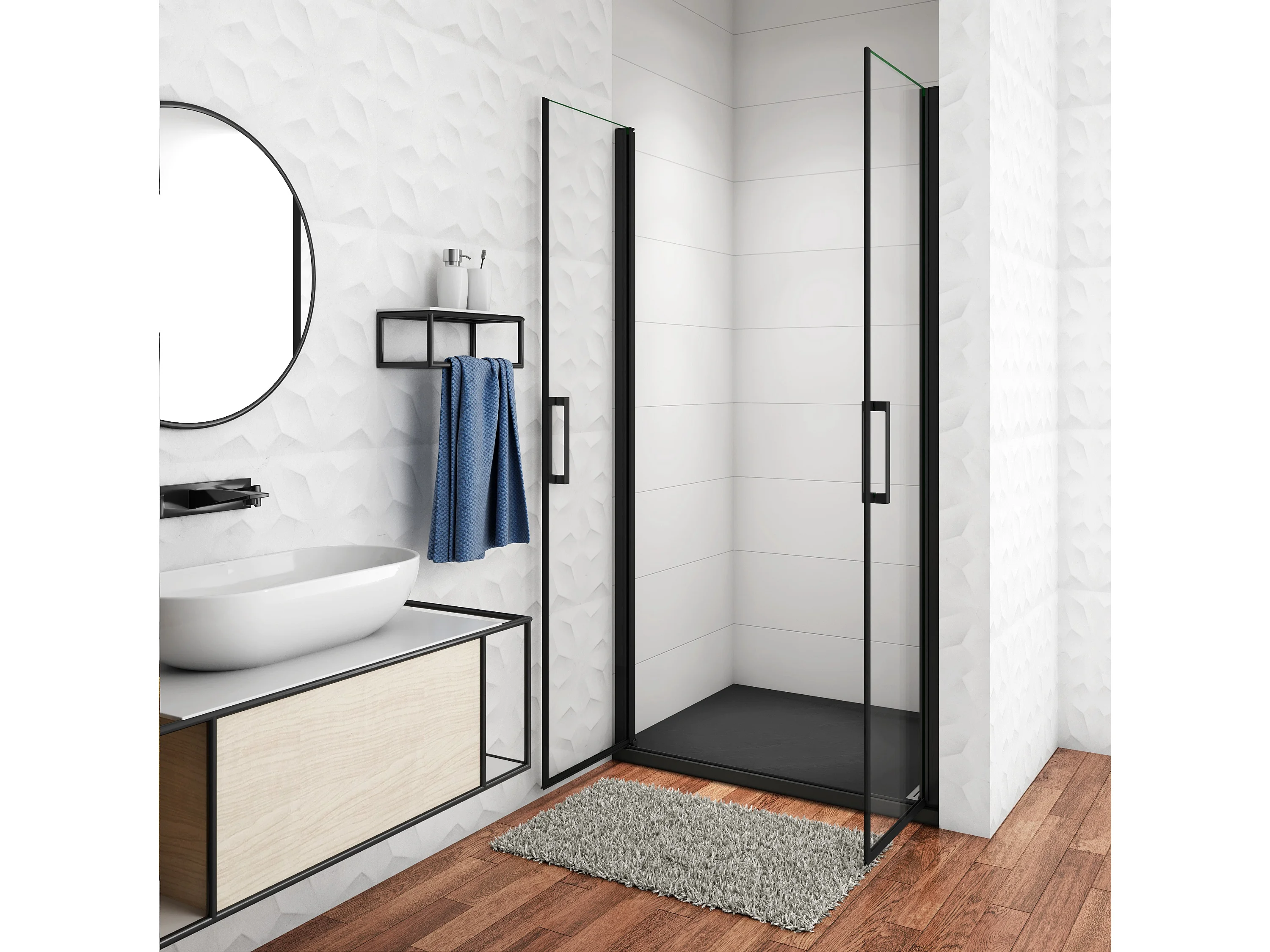 80x200 cm Box Doccia Per Nicchia Doppia Porta Battente Saloon In Vetro 8 mm Temperato Trasparente Anticalcare Telaio Nero Opaco