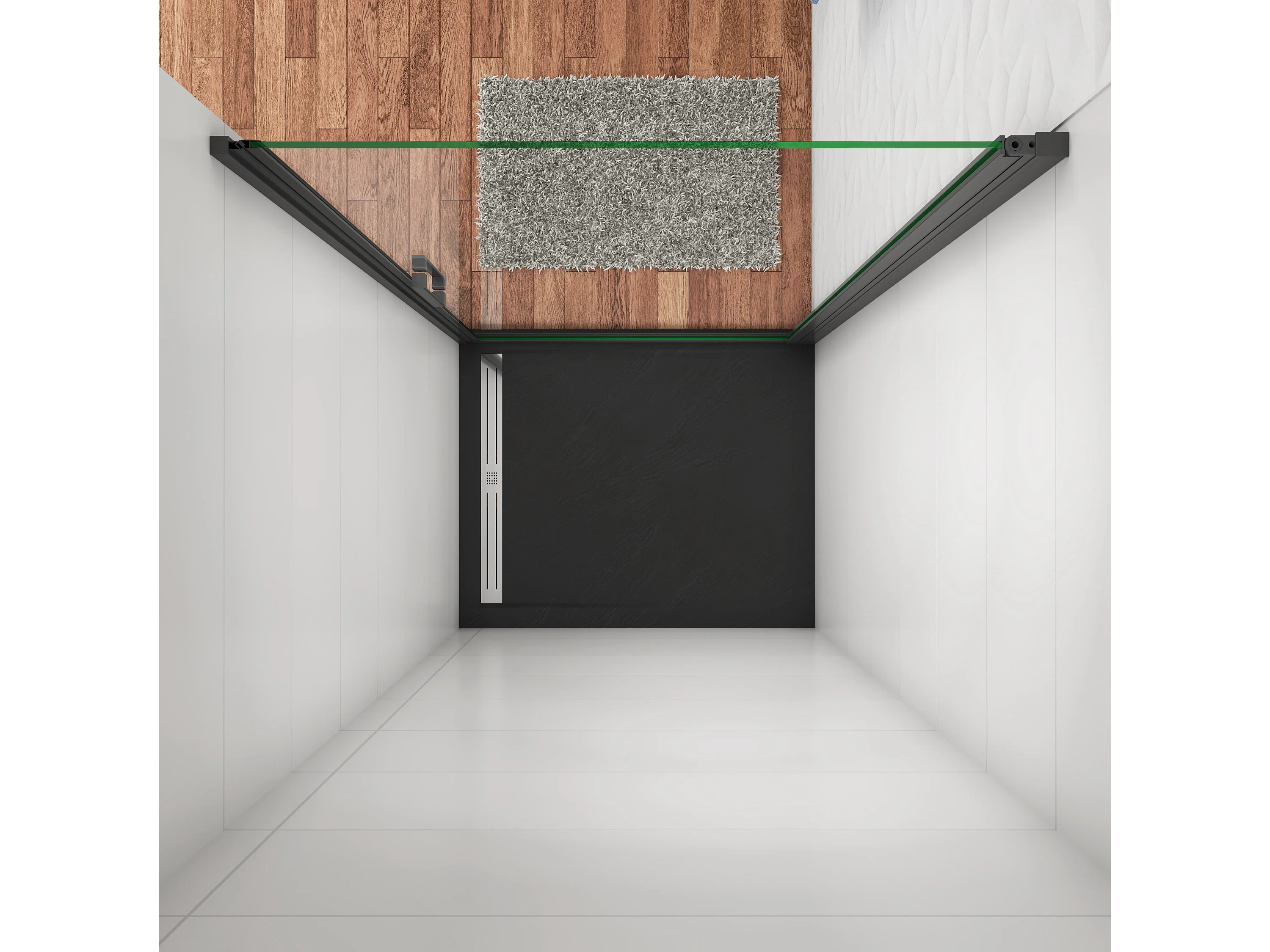 80x200 cm Porta Doccia Battente Per Nicchia Vetro Temperato Trasparente Anticalcare 8mm Telaio Nero Opaco Doccia a Filo Pavimento