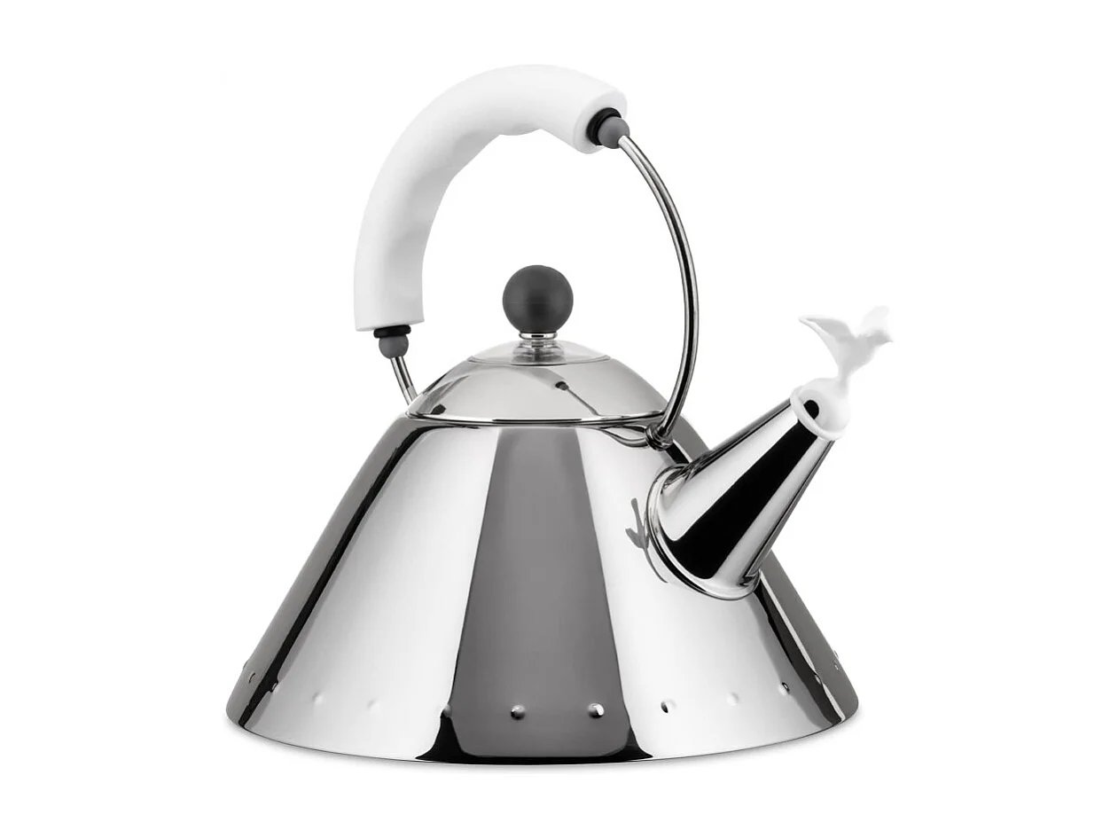 9093, Bollitore in acciaio con manico bianco e Fischietto, Alessi