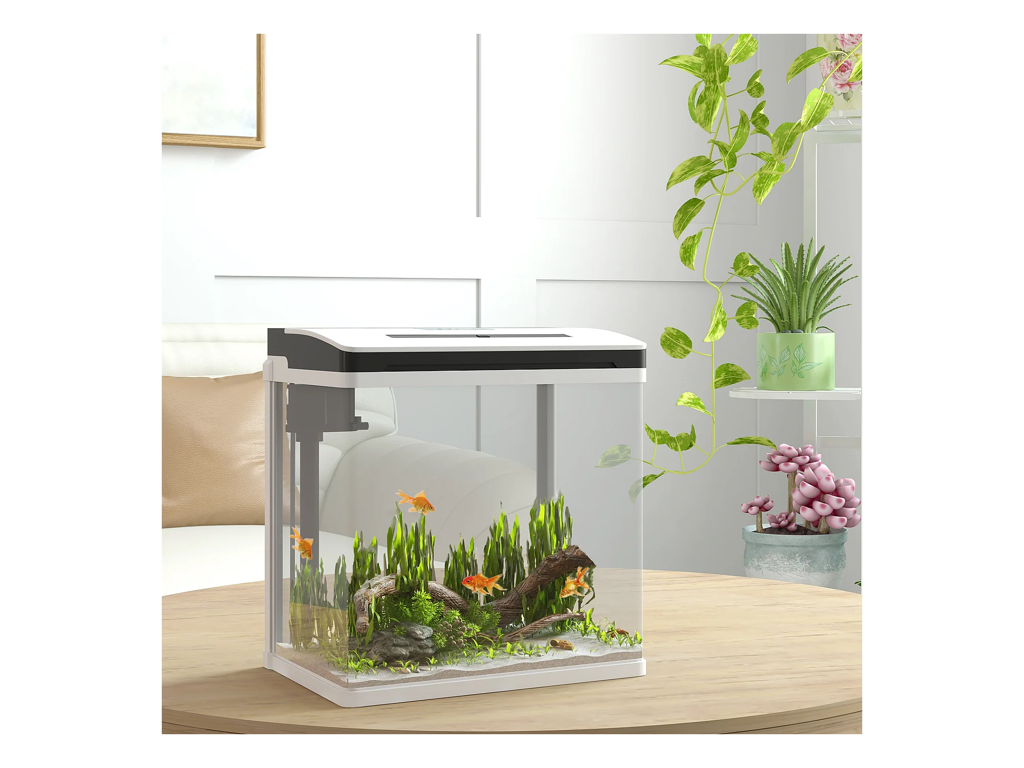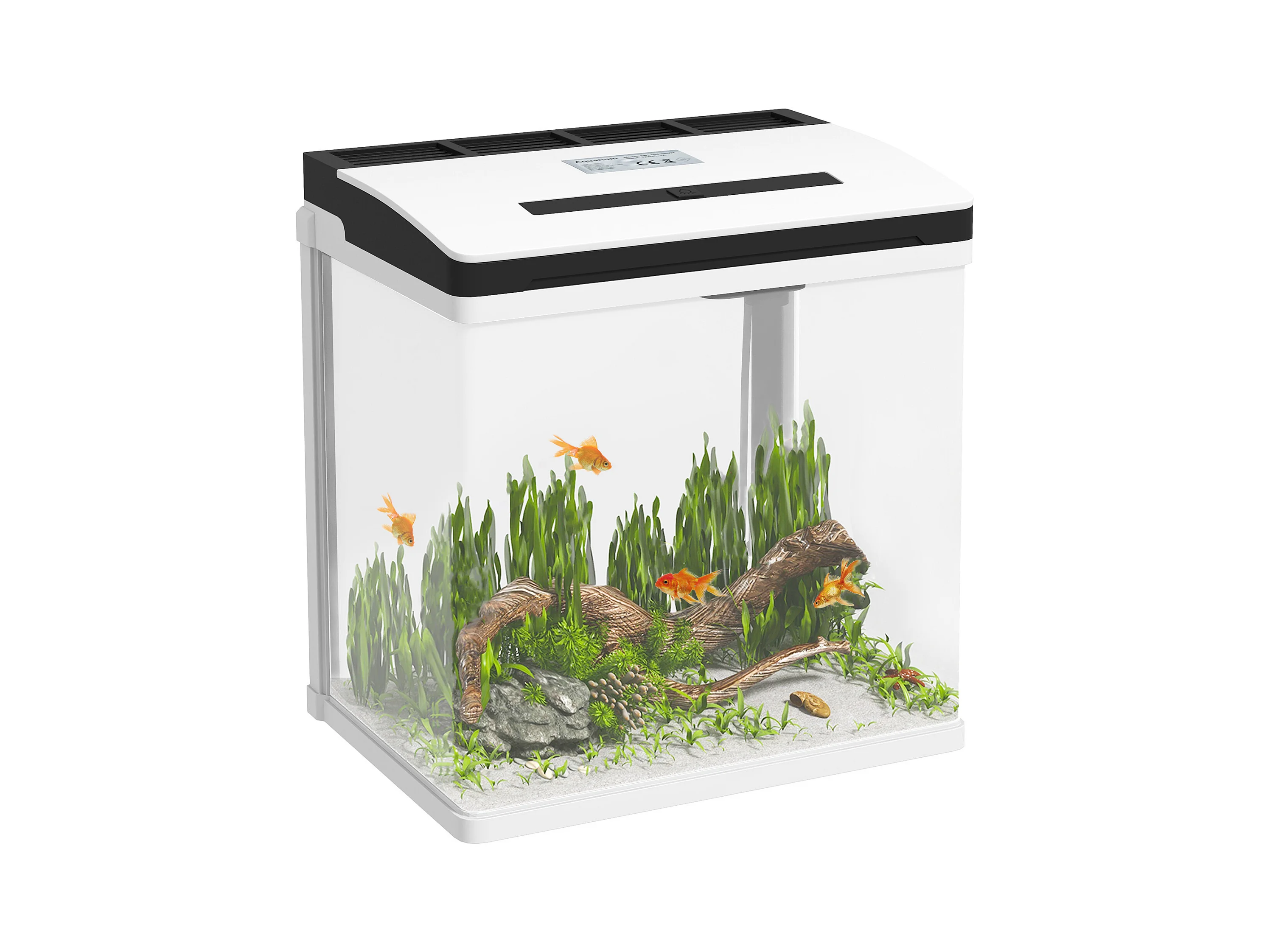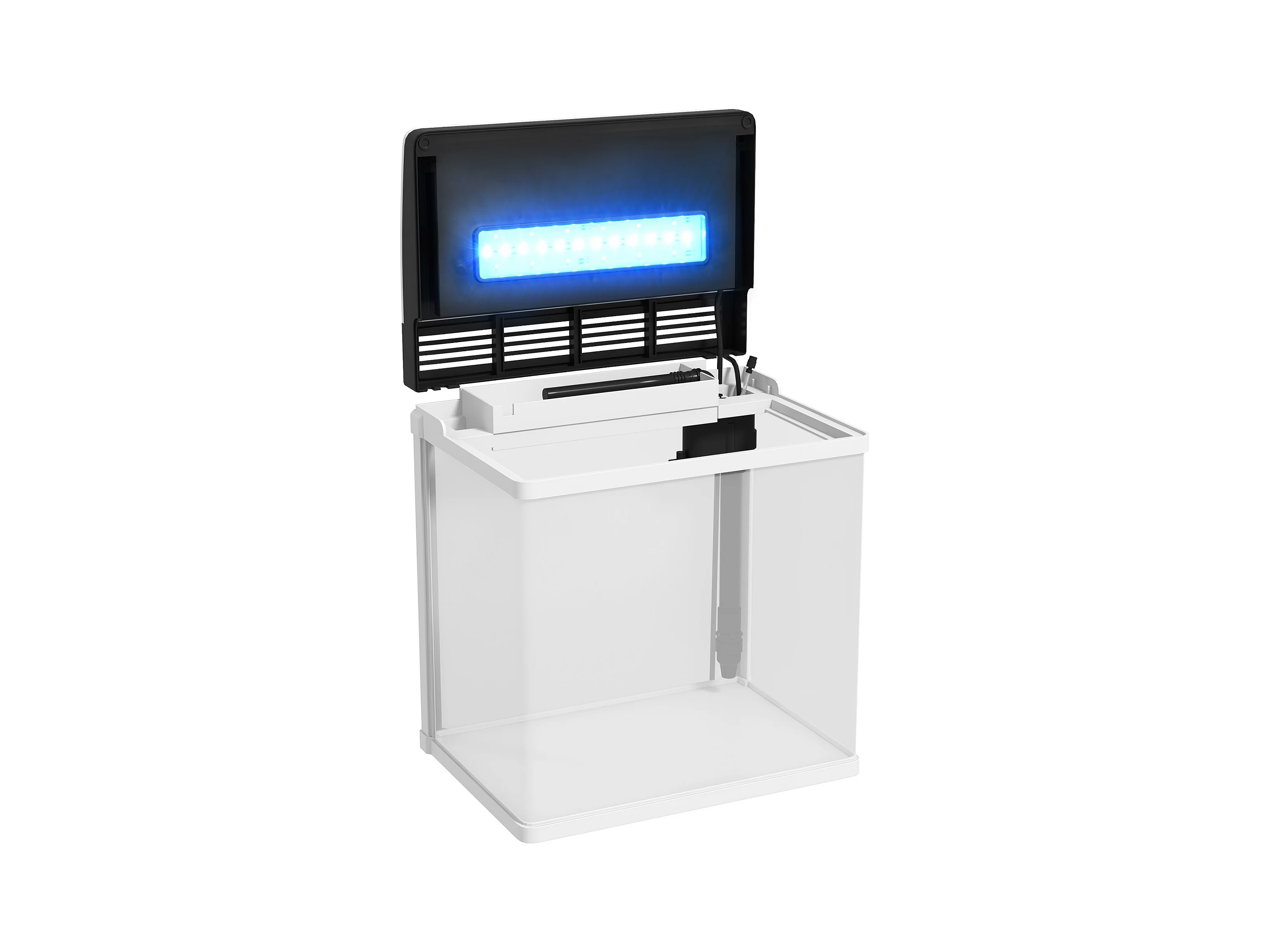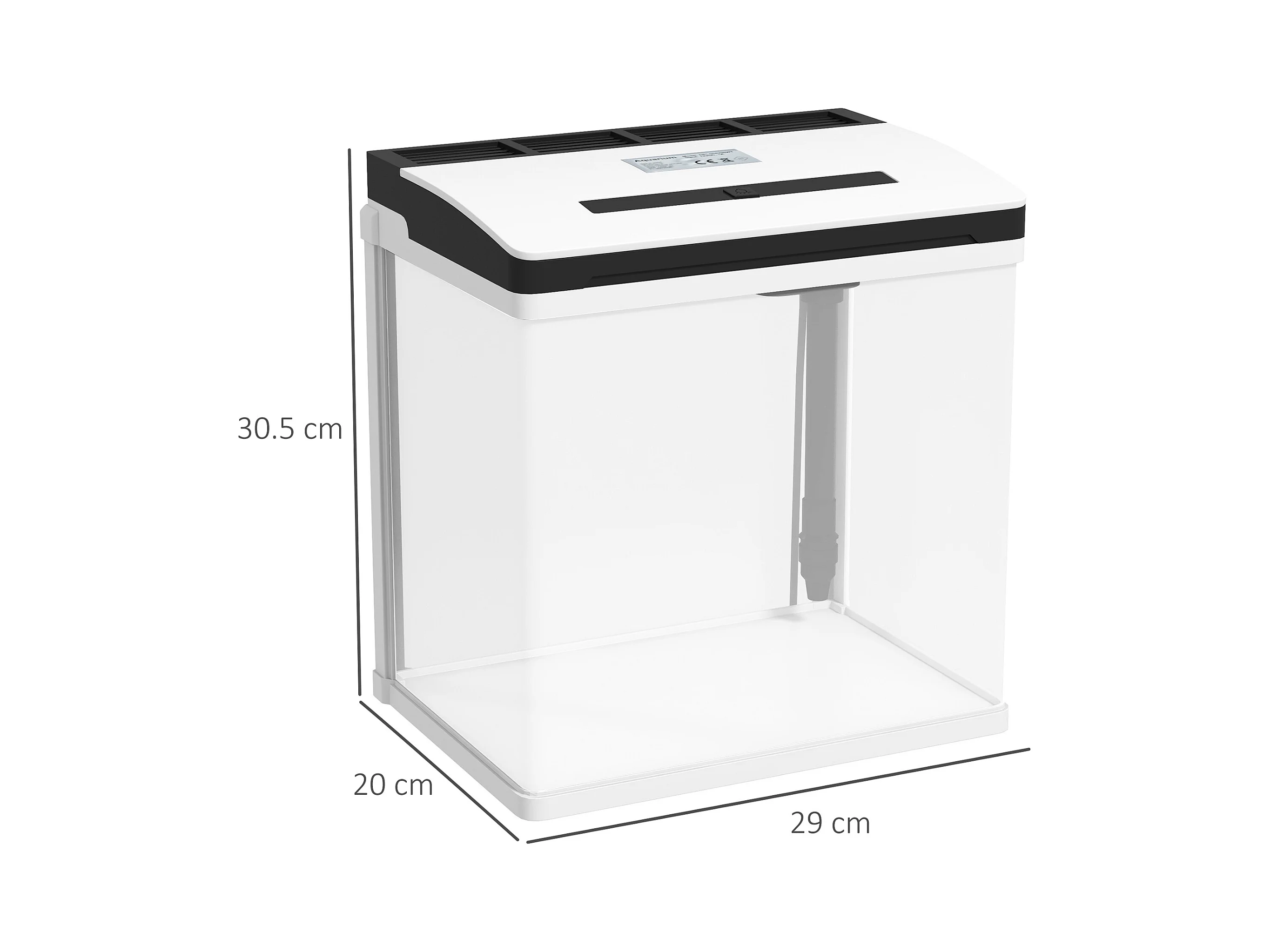 Acquario in vetro con luci led da 20l, filtro e pompa d'acqua bianco