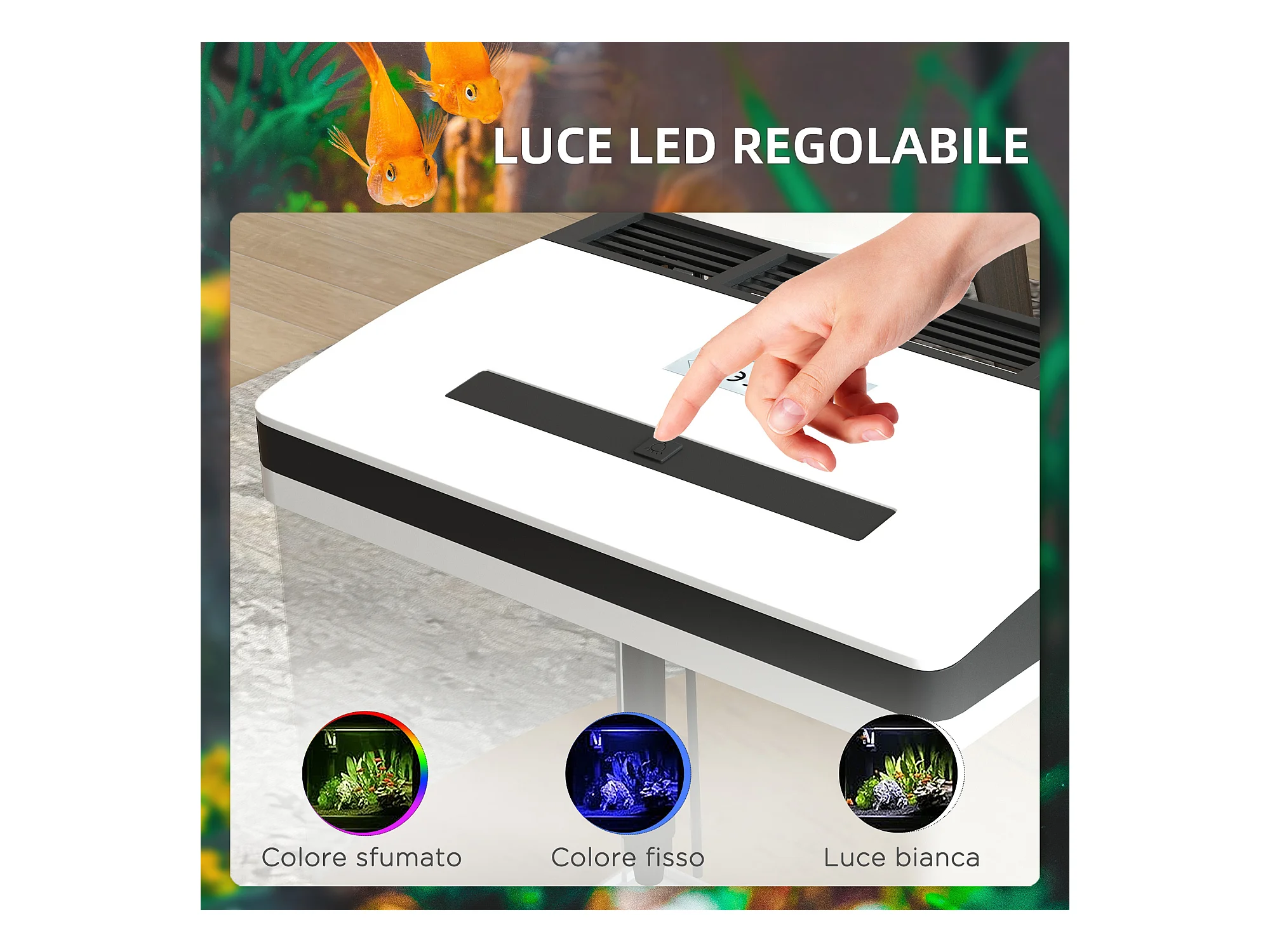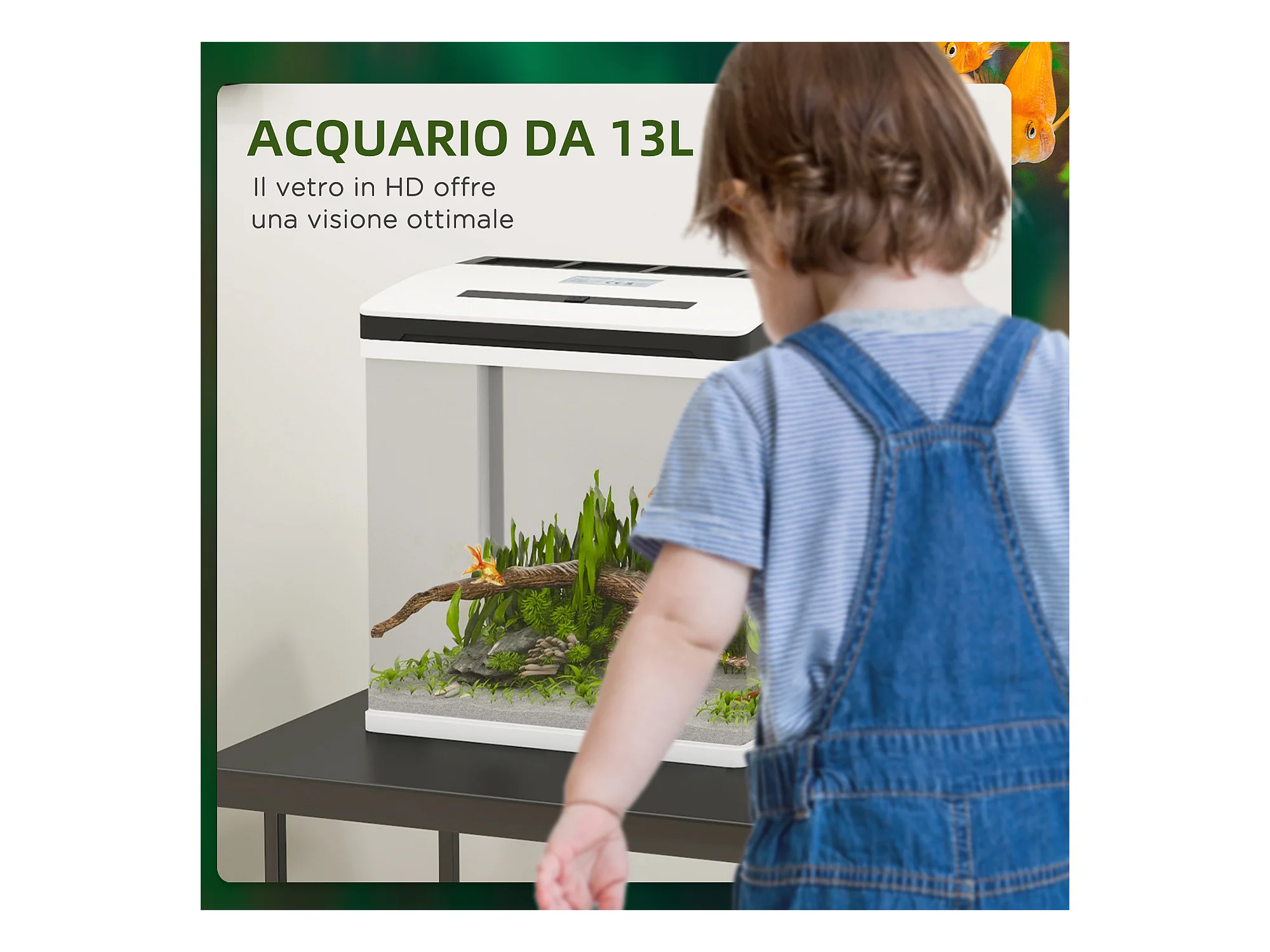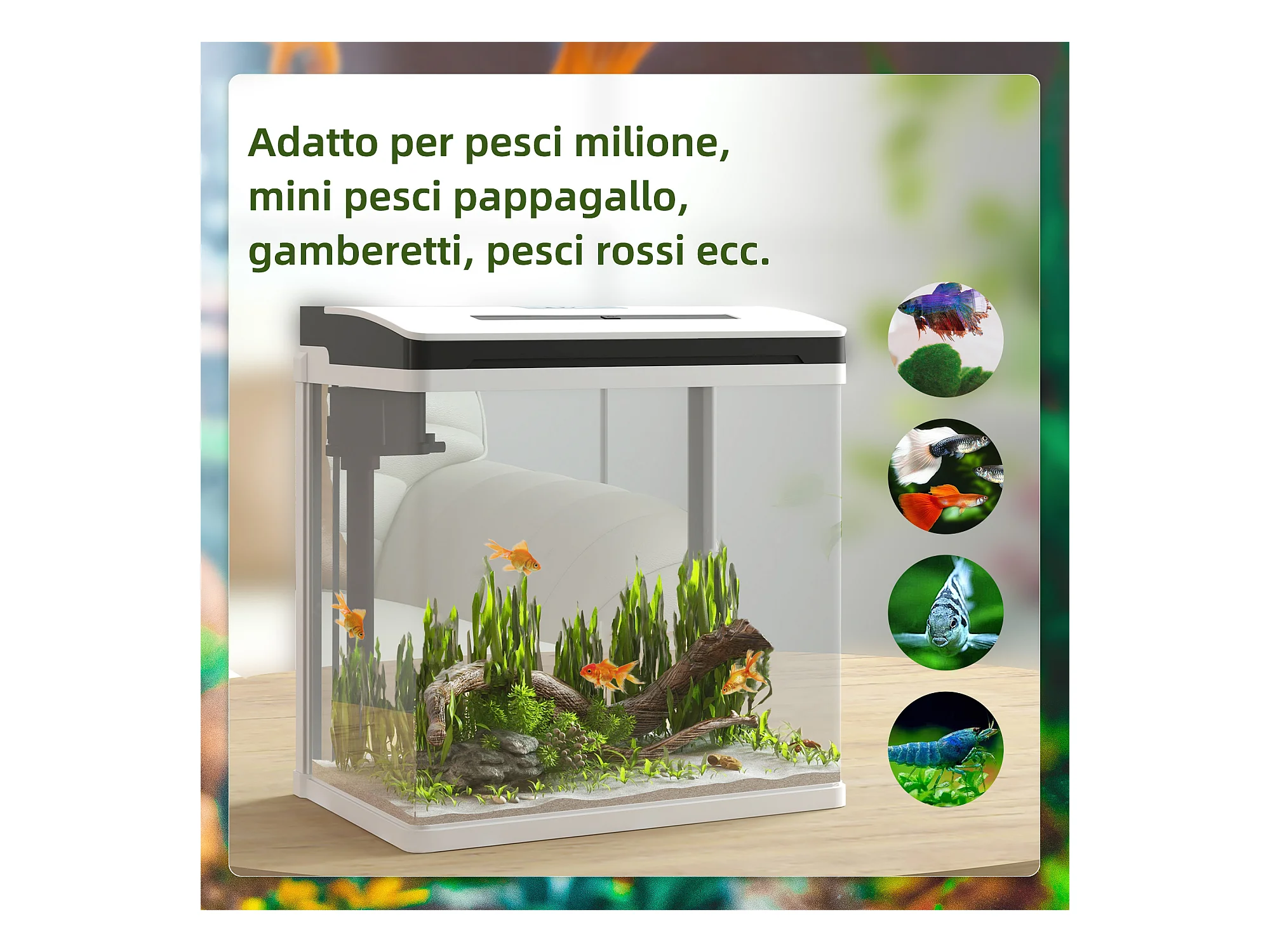 Acquario 13l a illuminazione led con pompa silenziosa in vetro e abs