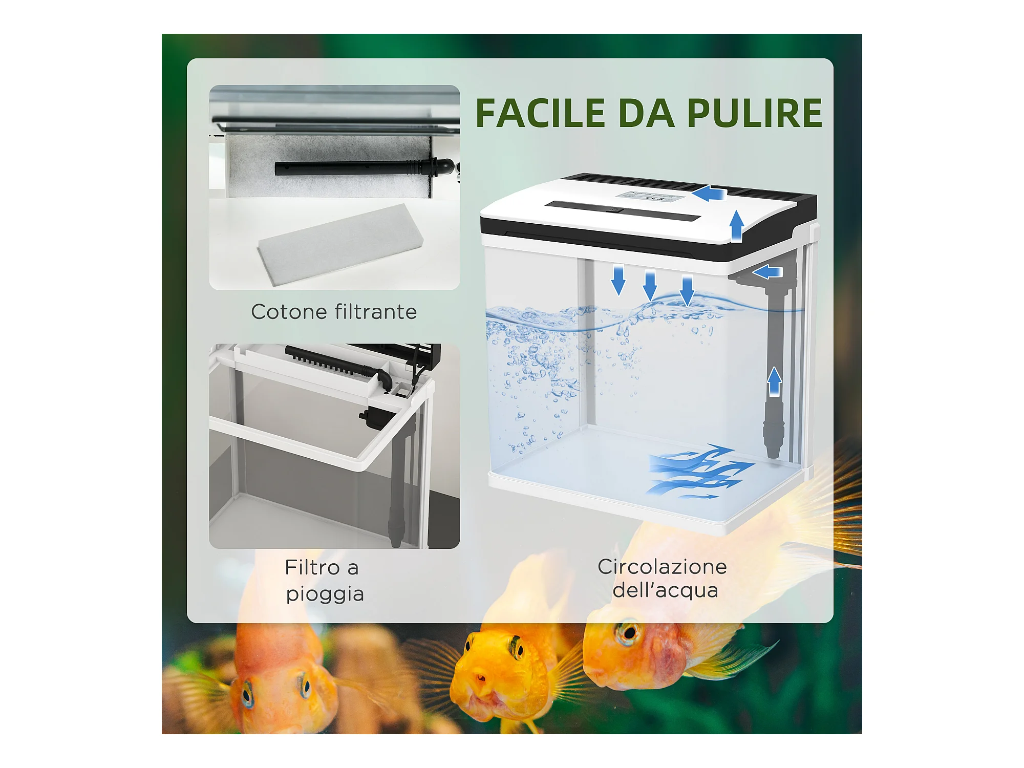 Acquario per pesci 26l con luci led e sistema di filtraggio 38x26x38 cm