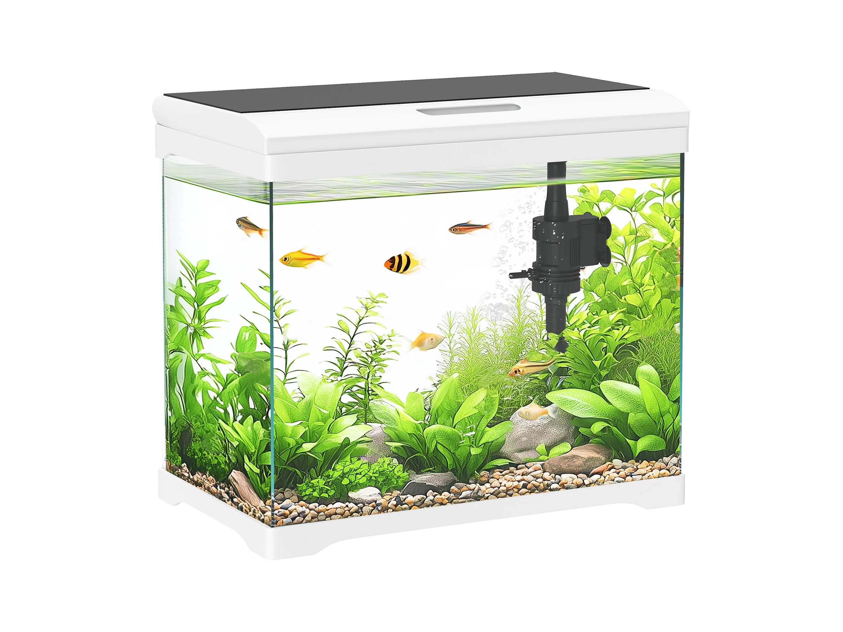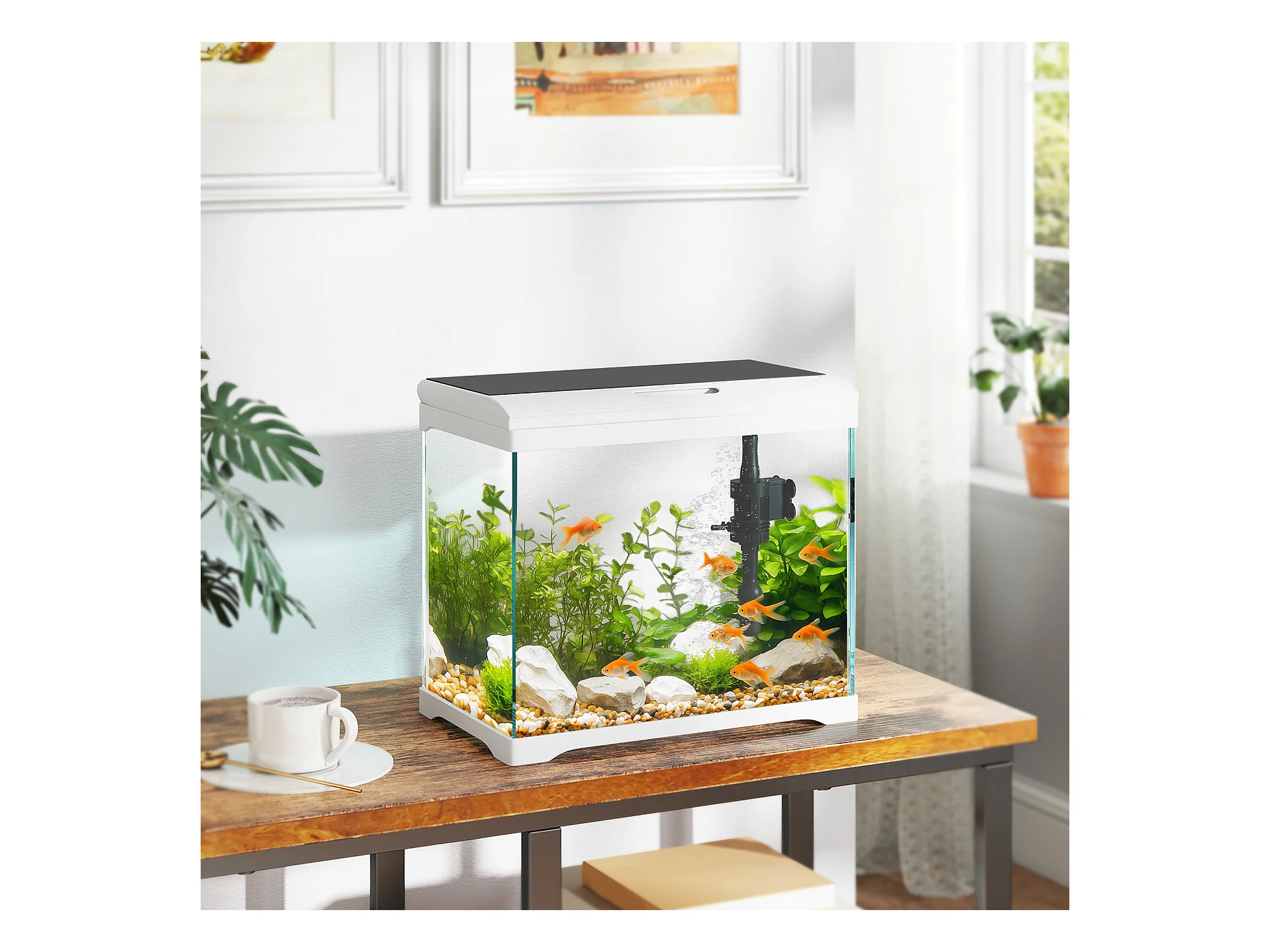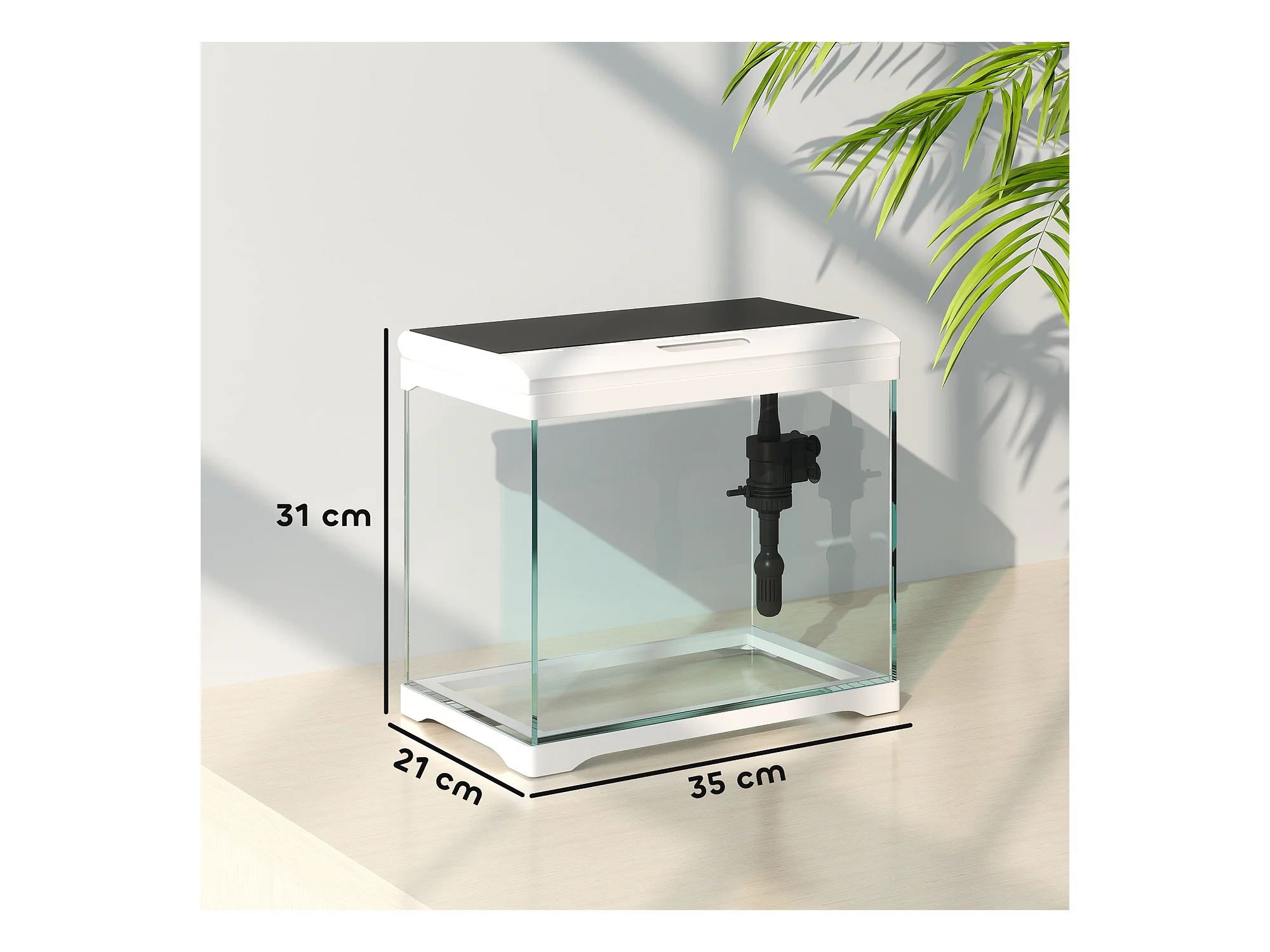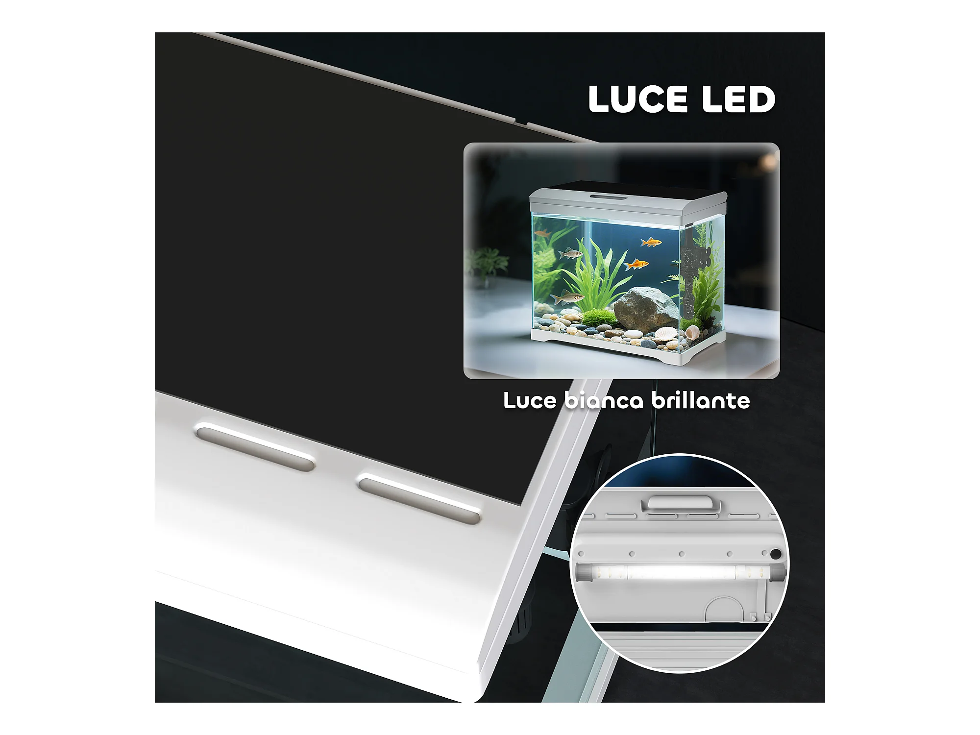 Acquario in vetro con luci led da 20l, filtro e pompa d'acqua bianco