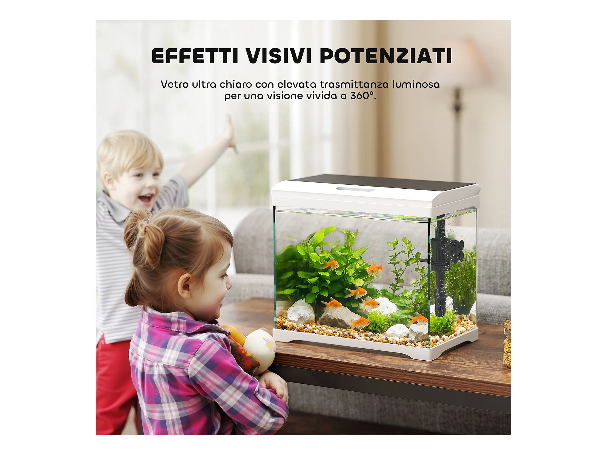 Acquario 13l a illuminazione led con pompa silenziosa in vetro e abs
