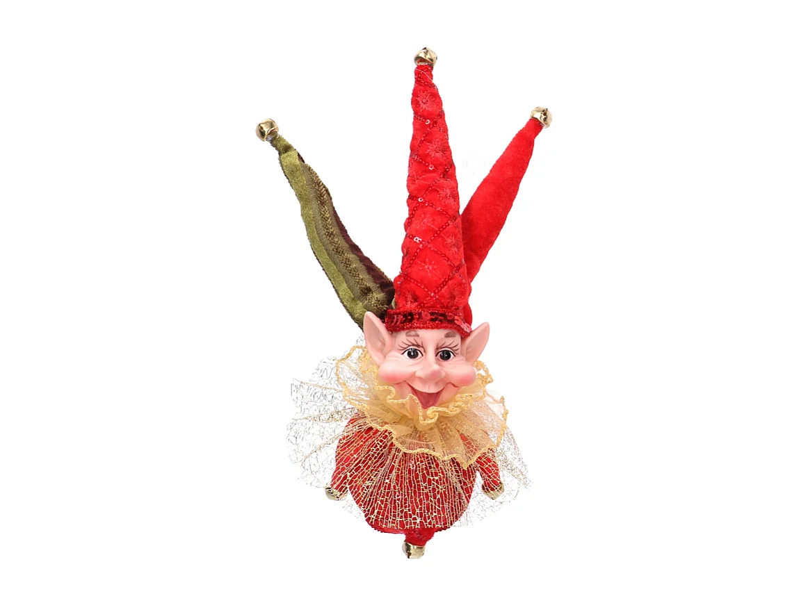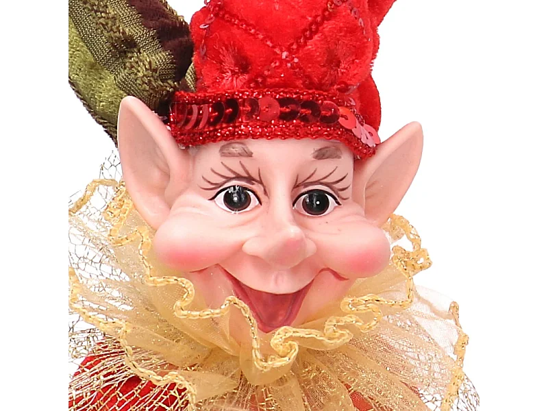 Addobbo elfo tessuto rosso e oro cm ø14h25