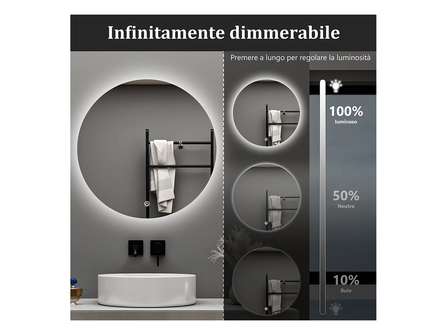AICA SPECCHIO DA BAGNO ROTONDO CON LED 100 x 100 cm, antiappannamento, interruttore a sfioramento