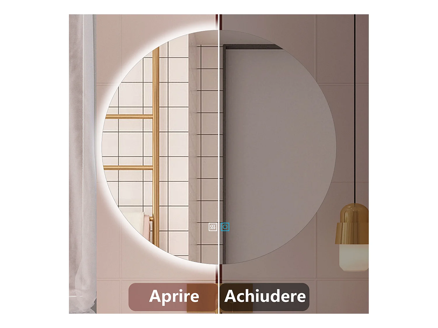 Specchio da bagno con bottone tattile