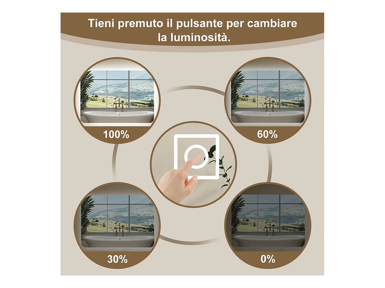 AICA Specchio da bagno 70 x 50 cm, dimmerabile, interruttore touch, Funzione Memoria, antiappannamento, 3 colori