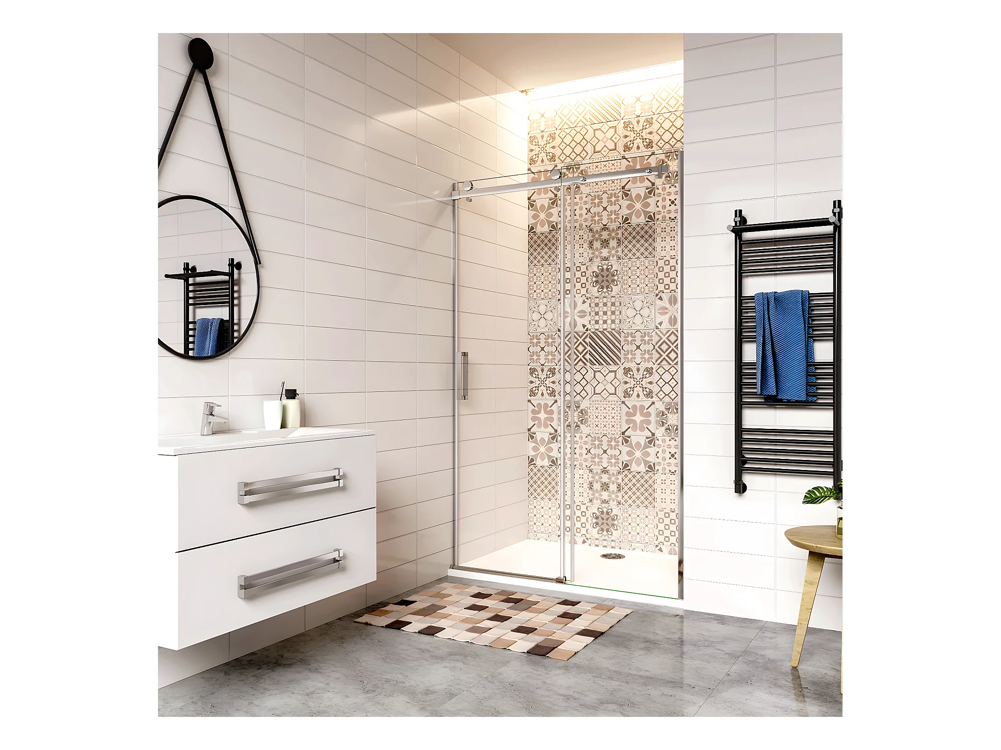 100x185 cm Porta Doccia Per Nicchia Anta Scorrevole Ingresso Laterale In Vetro 5mm Temperato Trasparente