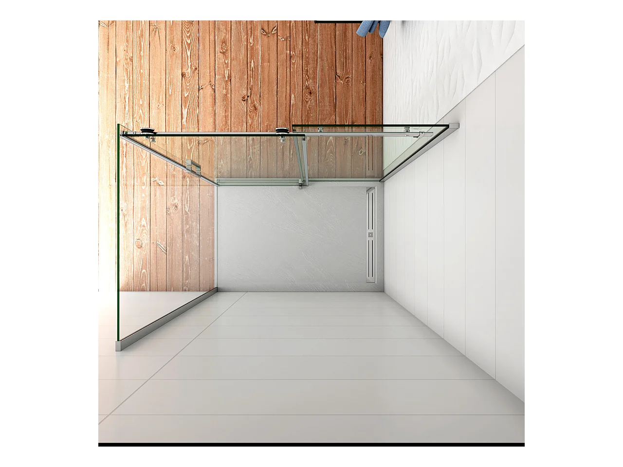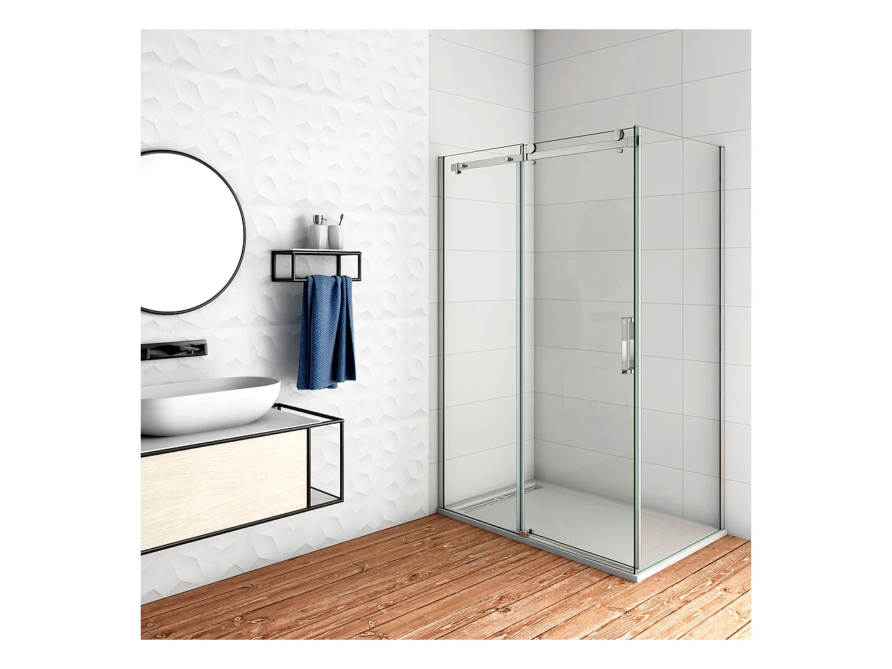 Aica Italy 135x70cm H.195 cm Box Doccia Angolare Porta Scorrevole Con Parete Laterale Vetro 8 Mm Temperato Anticalcare Trasparente Cromato Lucido