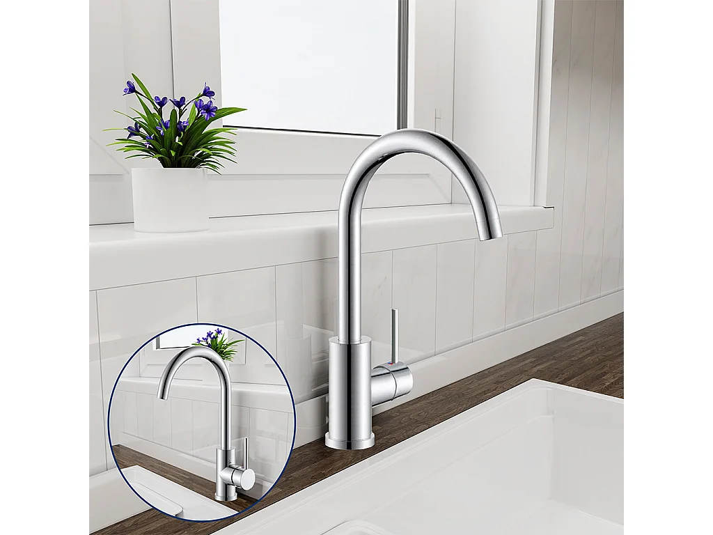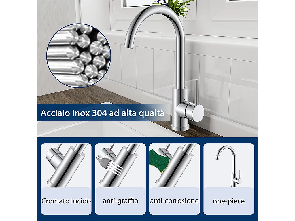 AICA Rubinetto miscelatore cucina per lavello collo di cigno, cromato