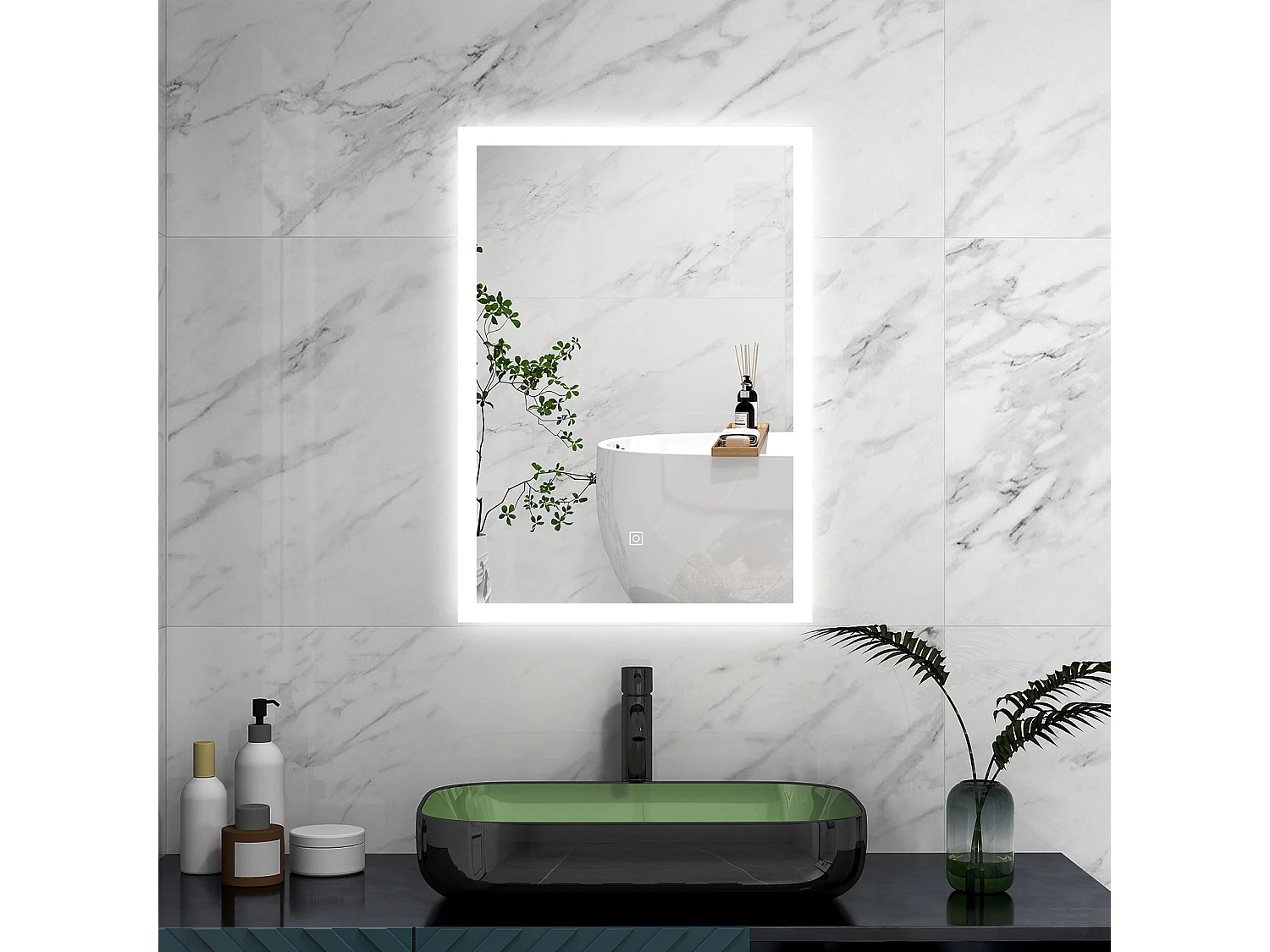 Specchio da bagno con bottone tattile