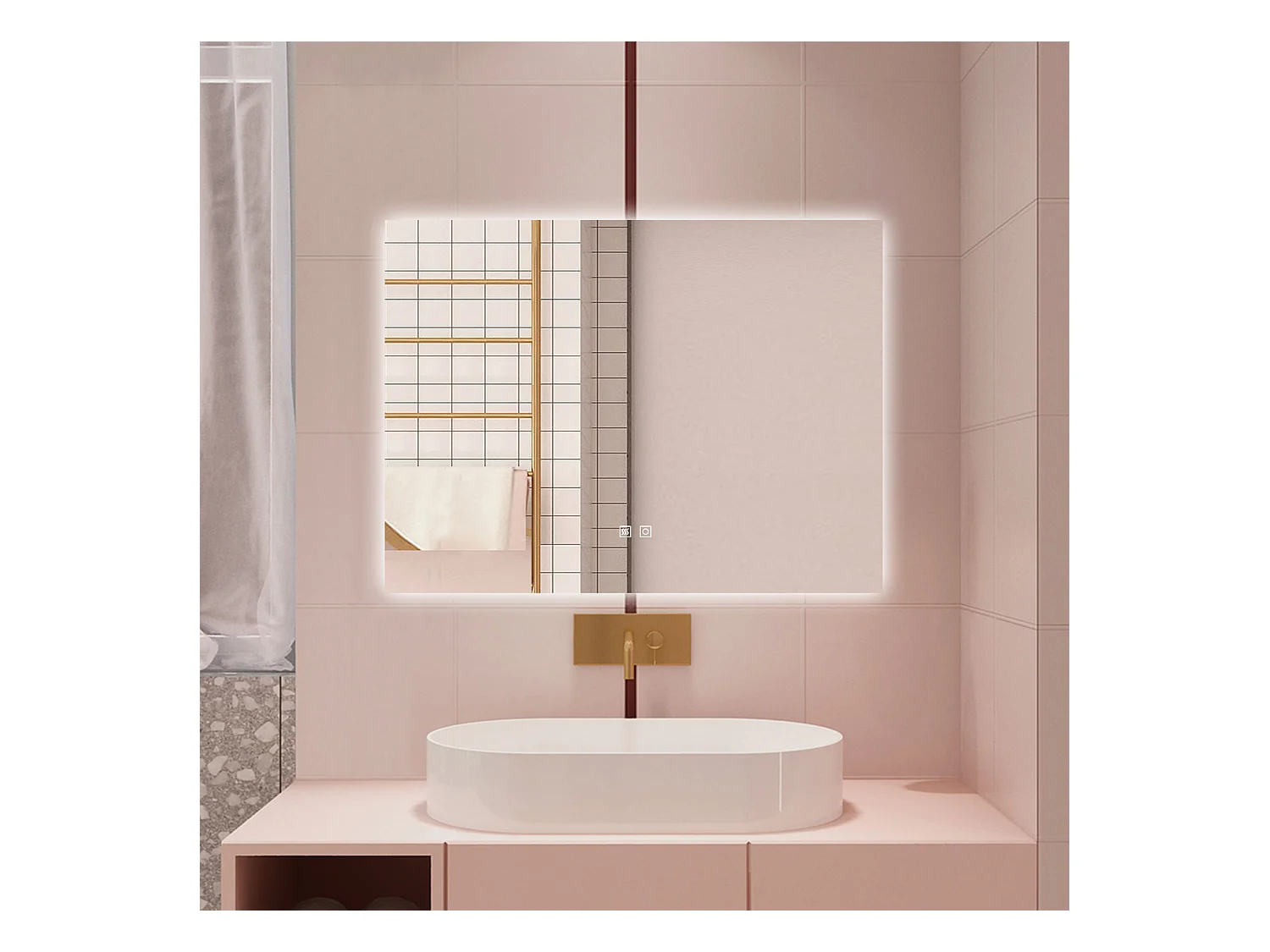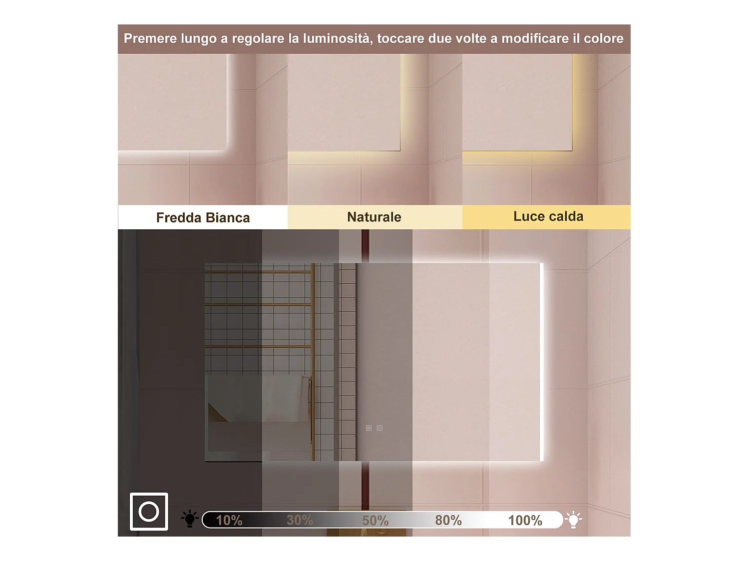 Specchio da bagno con bottone tattile