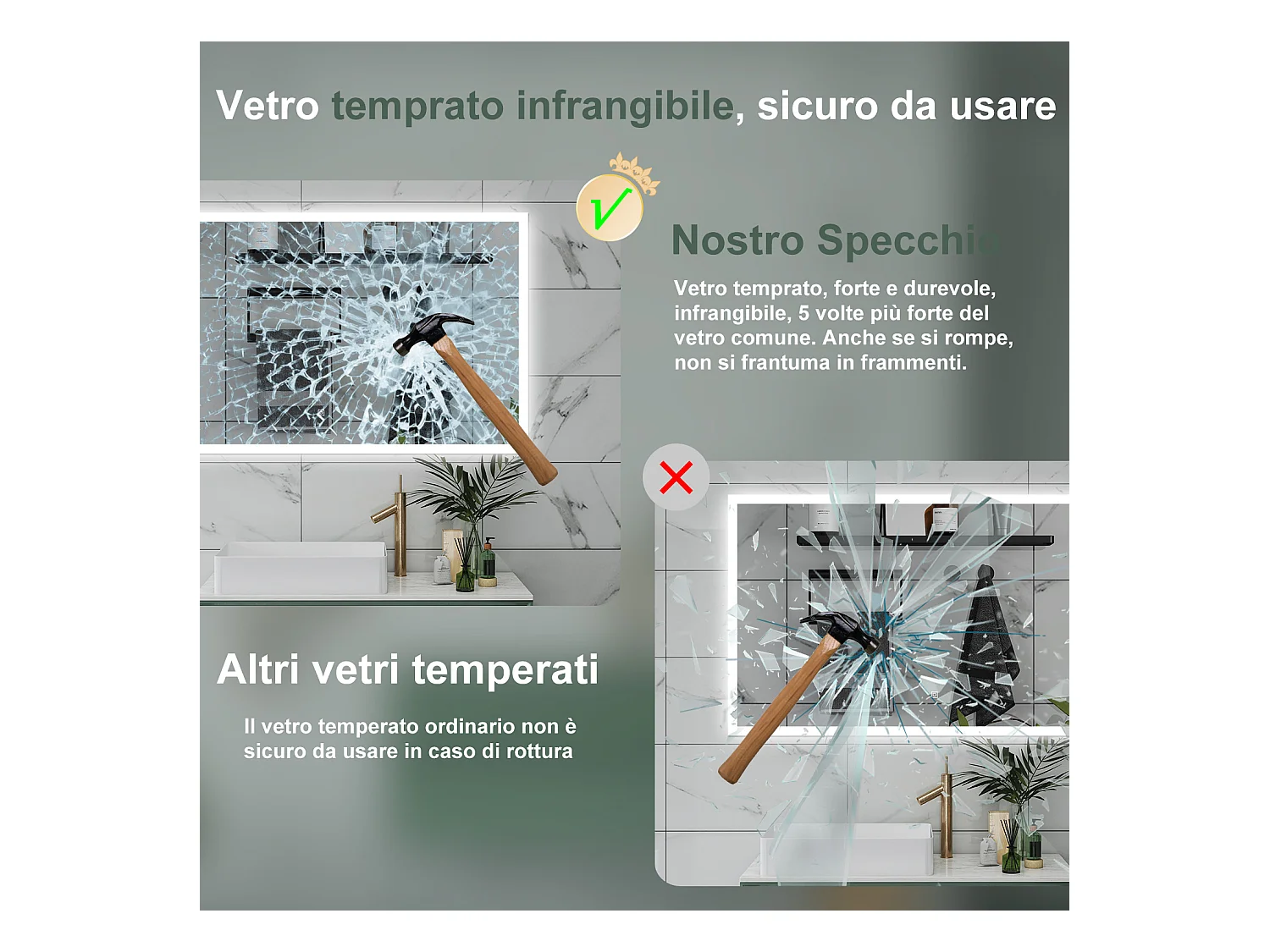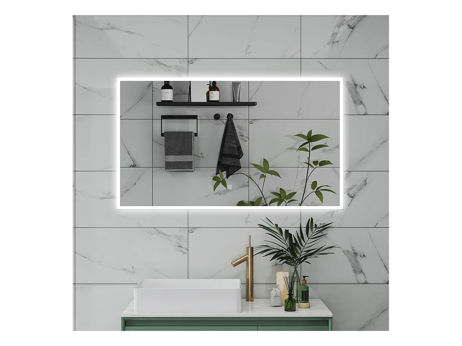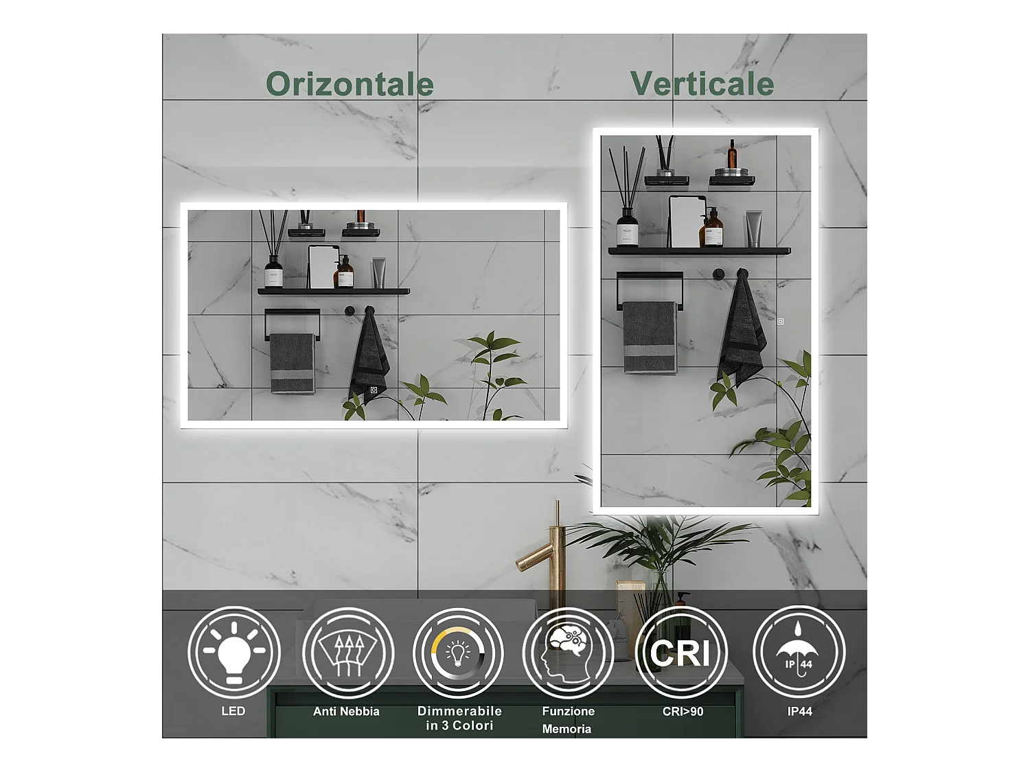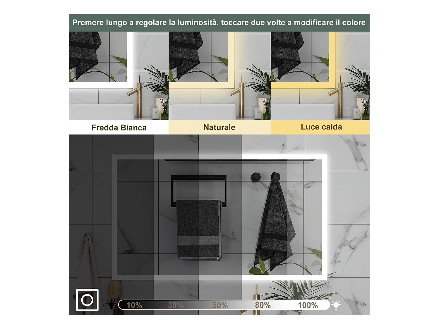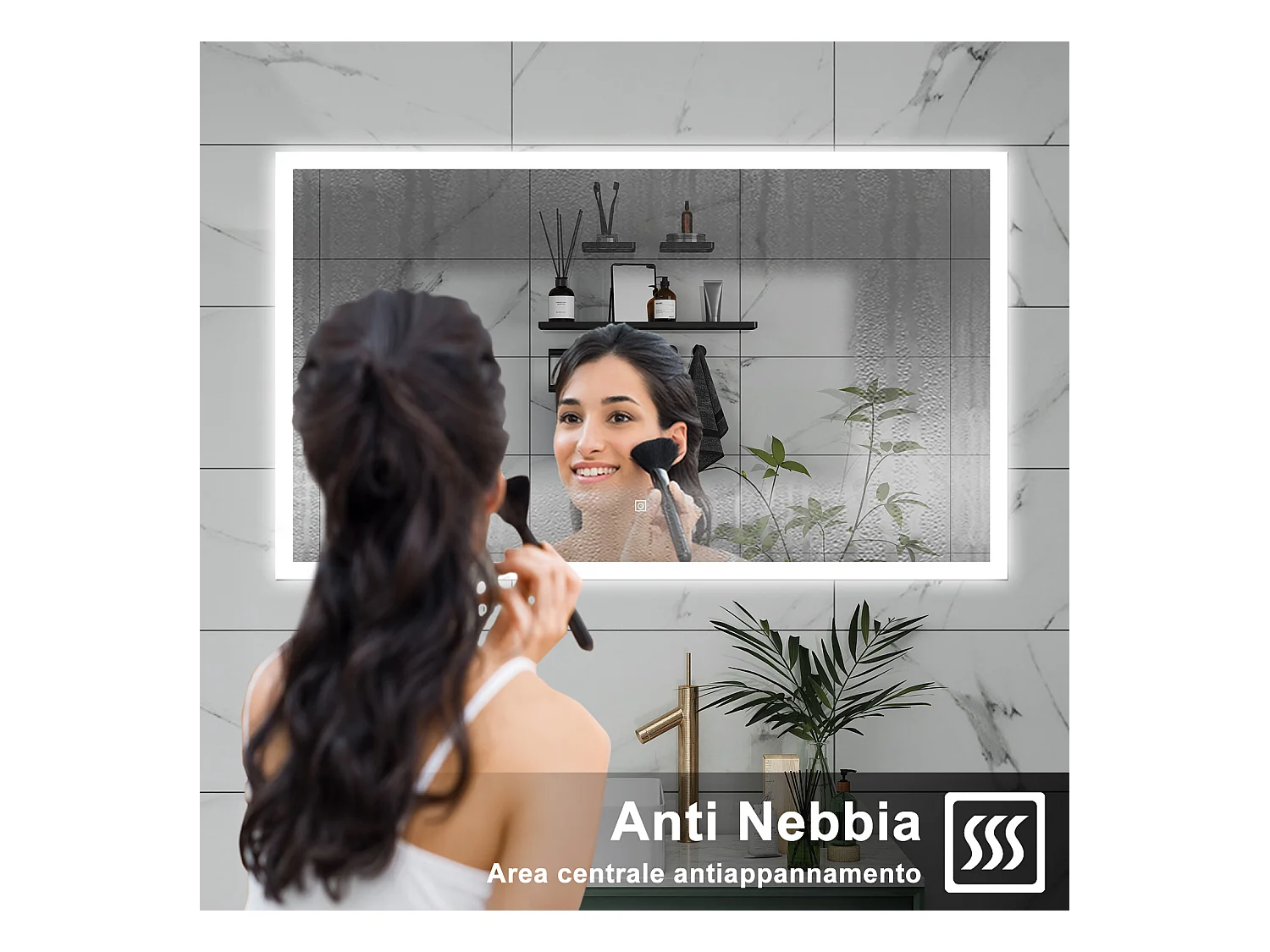 AICA Specchio da bagno 120 x 70 cm, dimmerabile, Funzione Memoria, antiappannamento, 3 colori