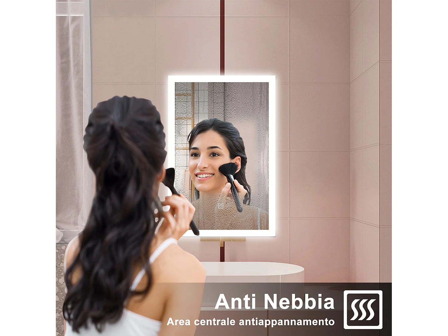 AICA Specchio 70x50cm,3 colori,Memoria, Antifog,Regorabile,Retroilluminato,doppio interruttore