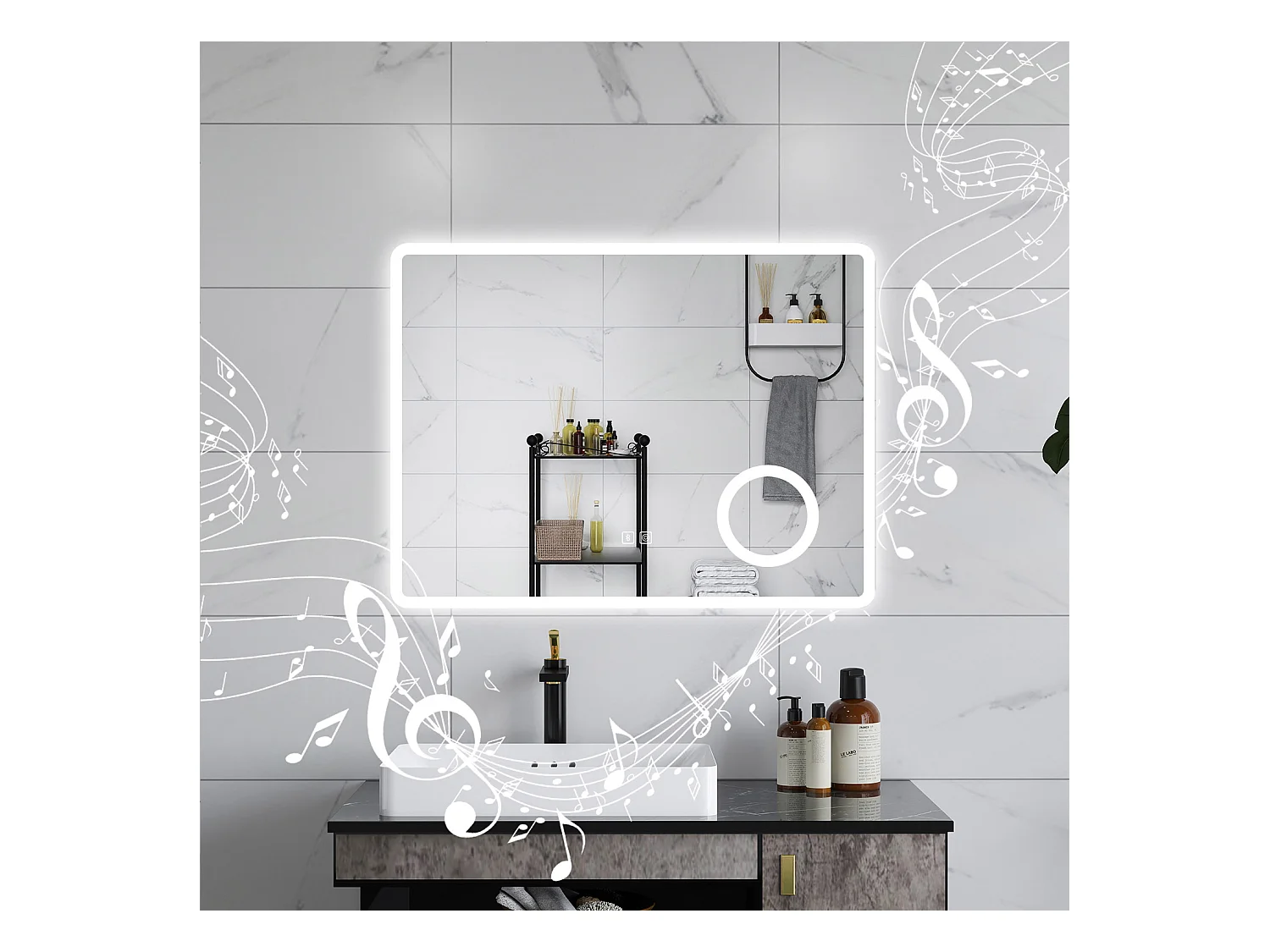 Aica Specchio da bagno bluetooth 80x60cm con antiappannamento + dimmerabile + 3 colori + ingrandimento 3X