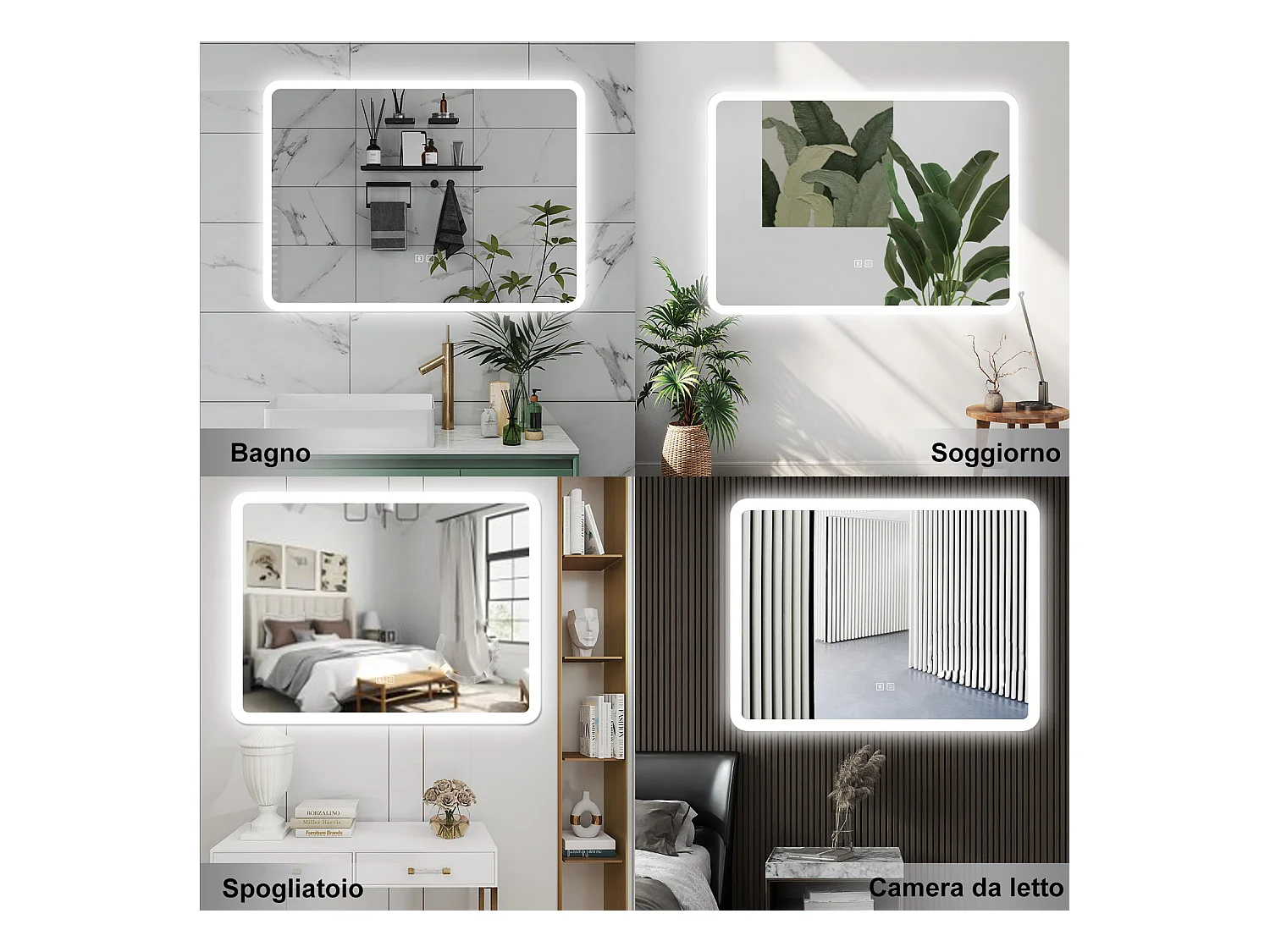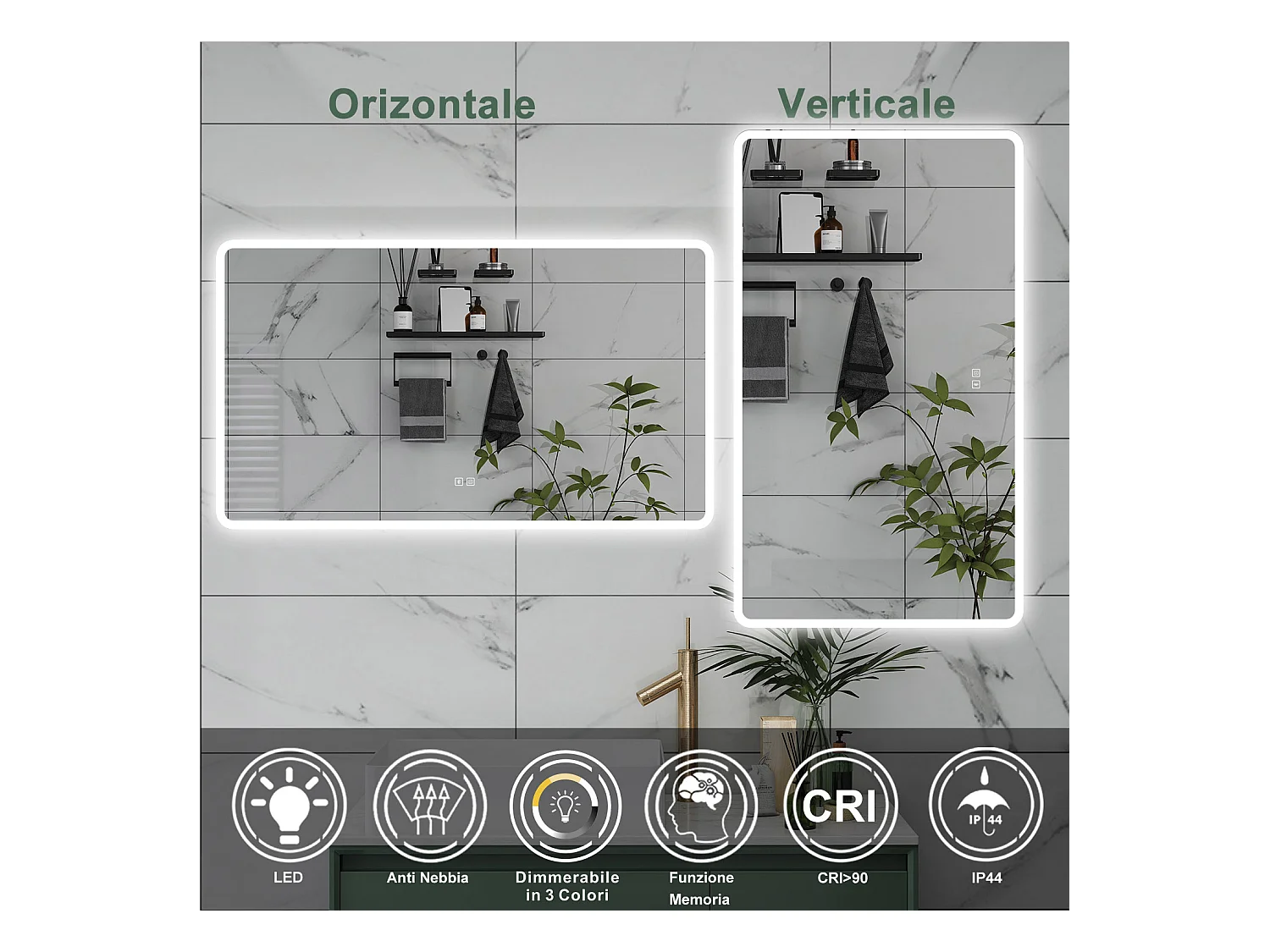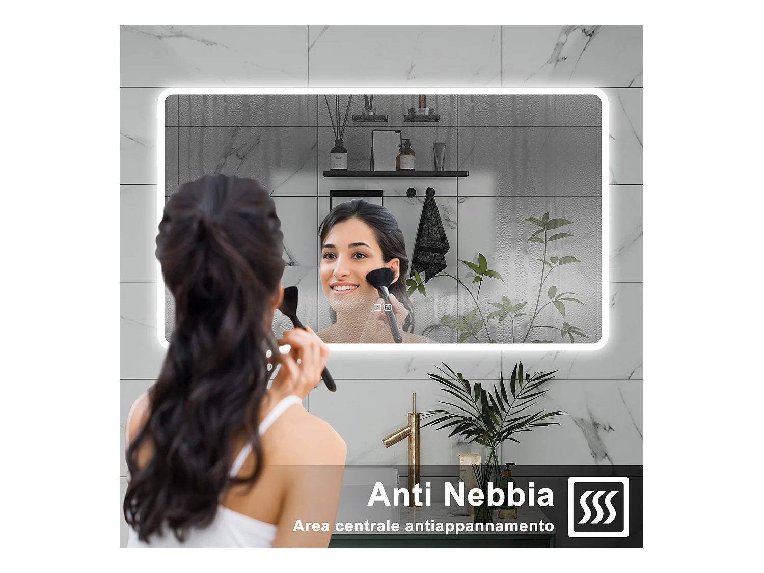 Specchio bagno Rettangolare 120x70cm Retroilluminato Con Led, Antiappannamento