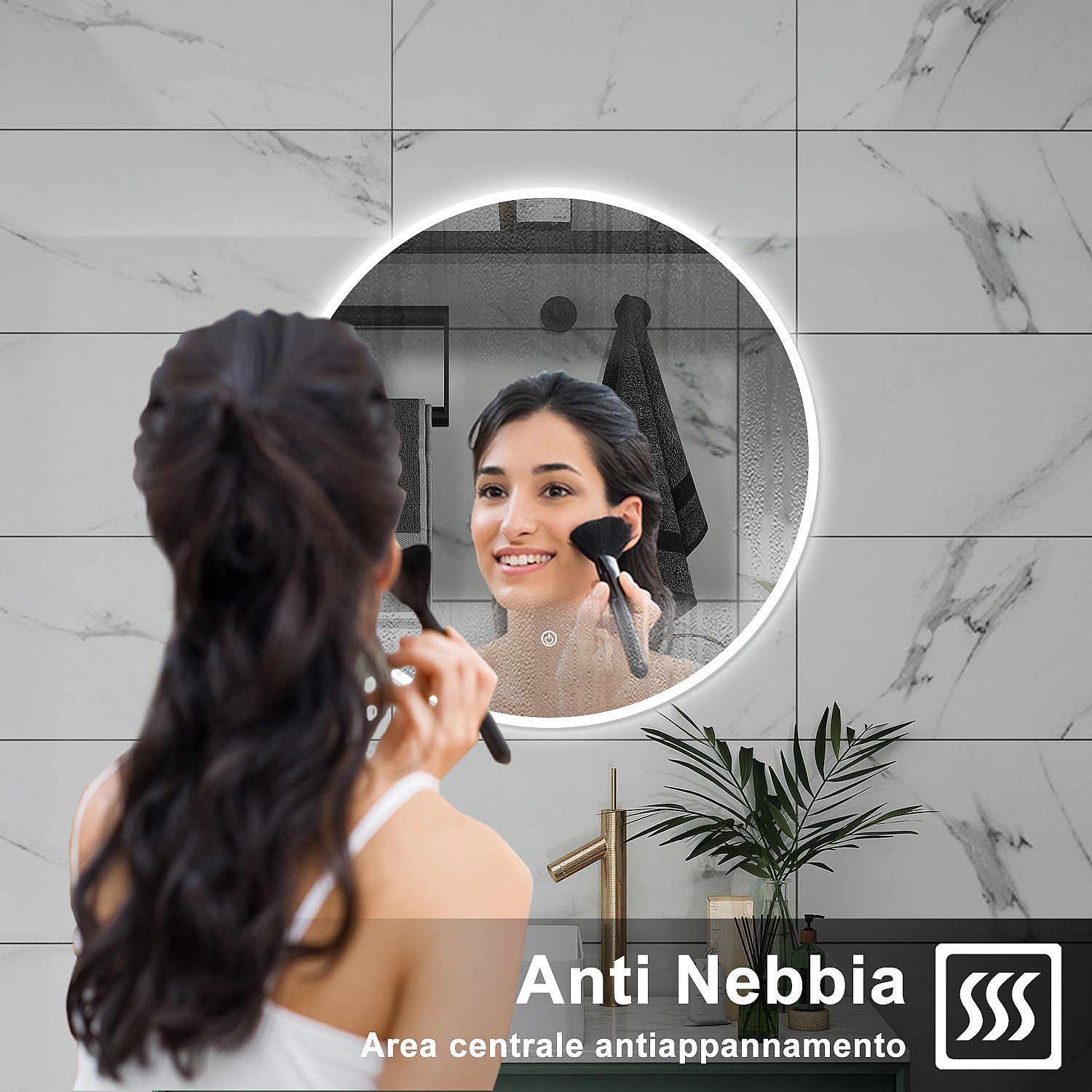 AICA Specchio da bagno rotondo con LED,Diametro 70cm,3 Temperature di Colore,Disappannamento,Infinitamente Dimmerabile