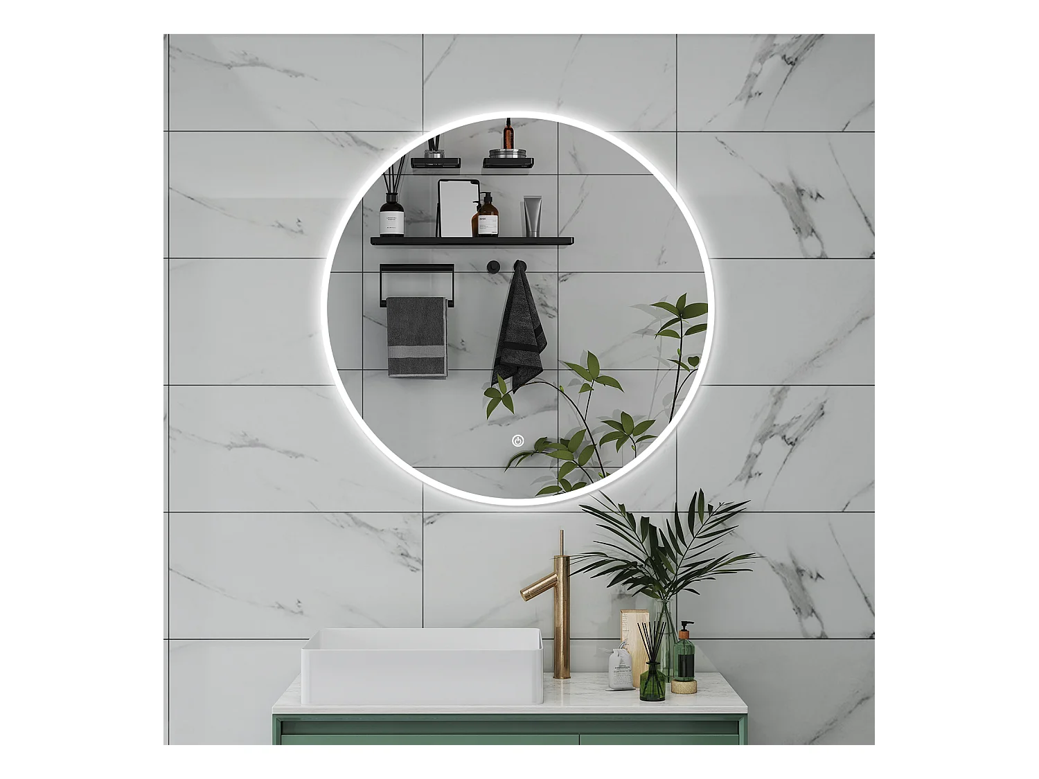 AICA SPECCHIO DA BAGNO ROTONDO CON LED 70 x 70 cm, antiappannamento, interruttore a sfioramento(Retroilluminato)