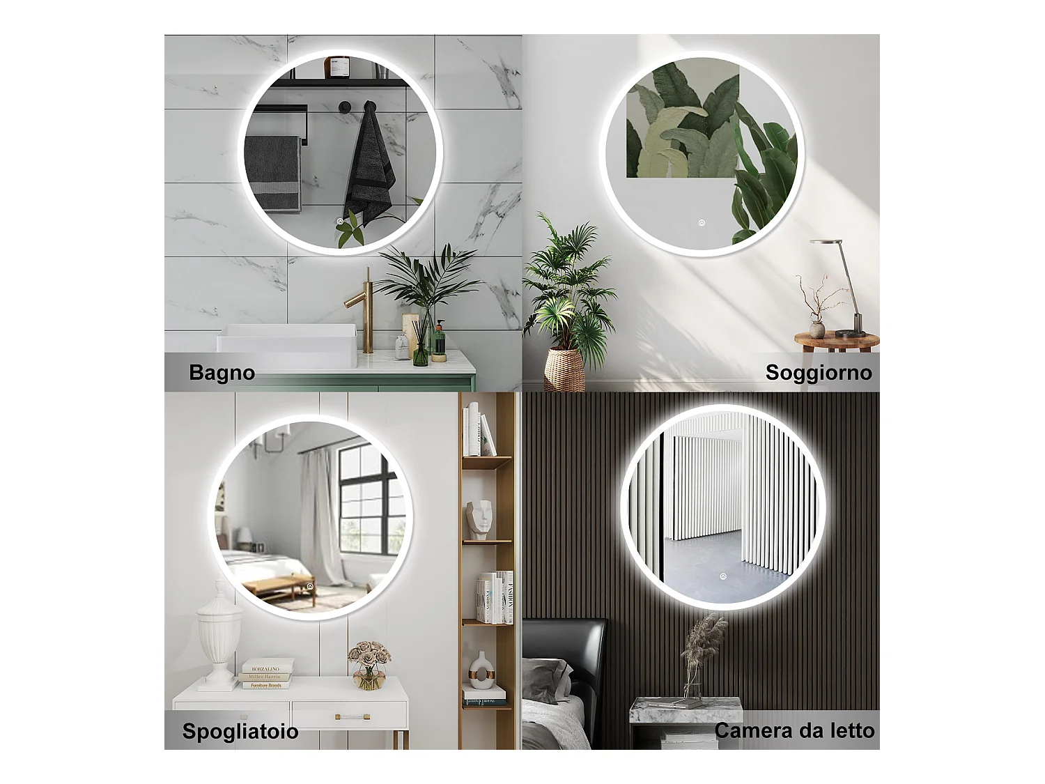 AICA SPECCHIO DA BAGNO ROTONDO CON LED 70 x 70 cm, antiappannamento, interruttore a sfioramento
