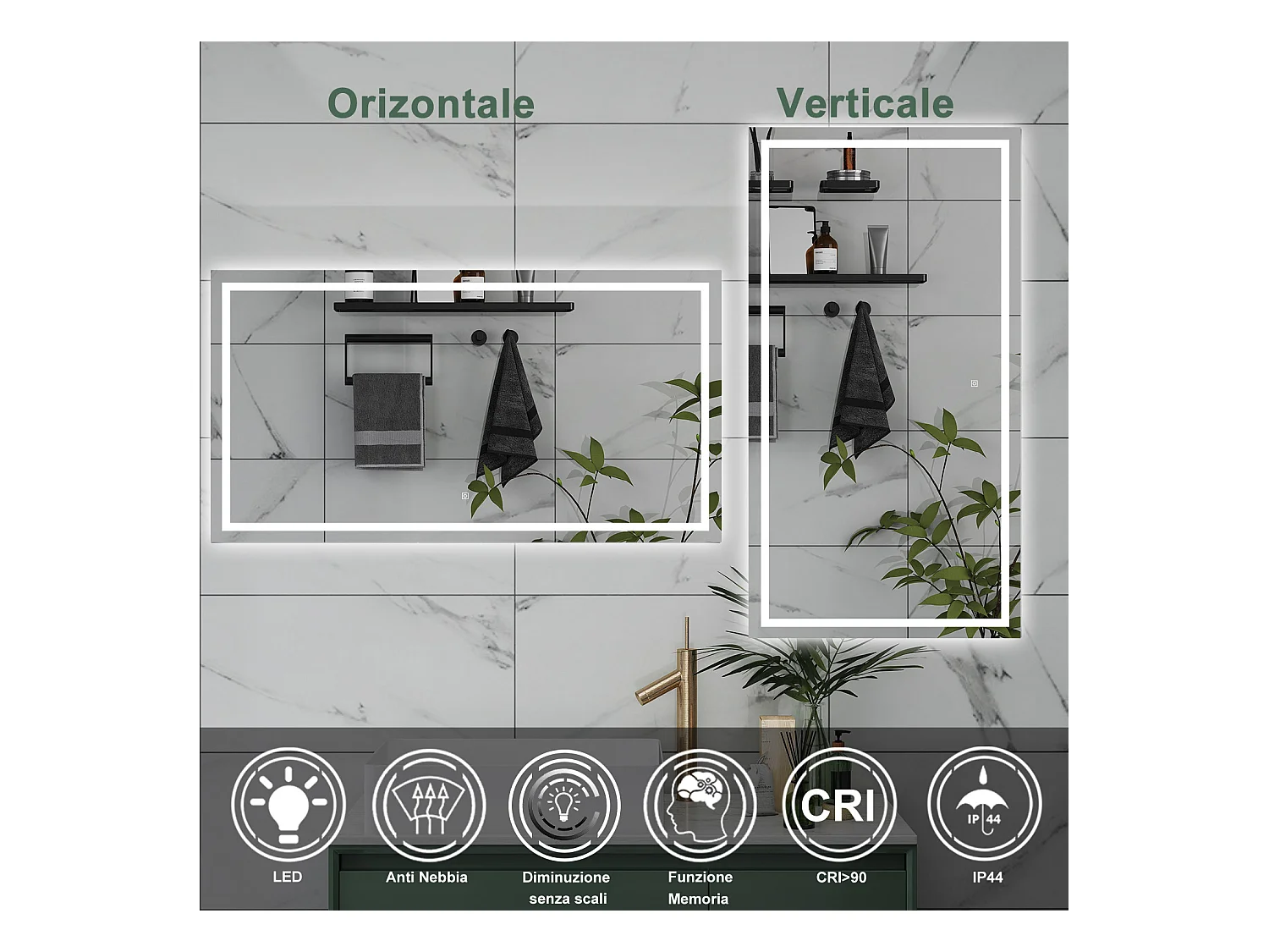 Aica Specchio da bagno a LED, 120x80cm, Disappannamento, Infinitamente Dimmerabile, Funzione Memoria