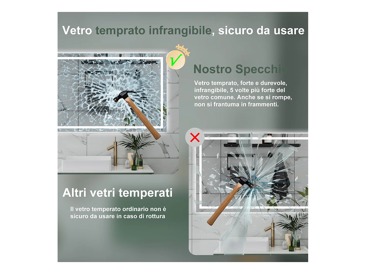 Specchio da bagno con bottone tattile