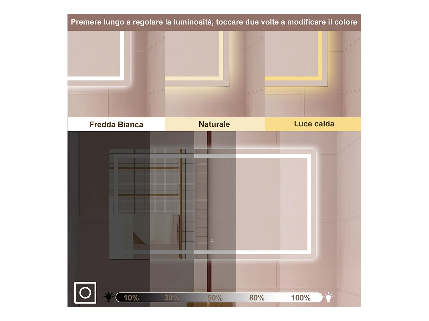 Specchio da bagno con bottone tattile