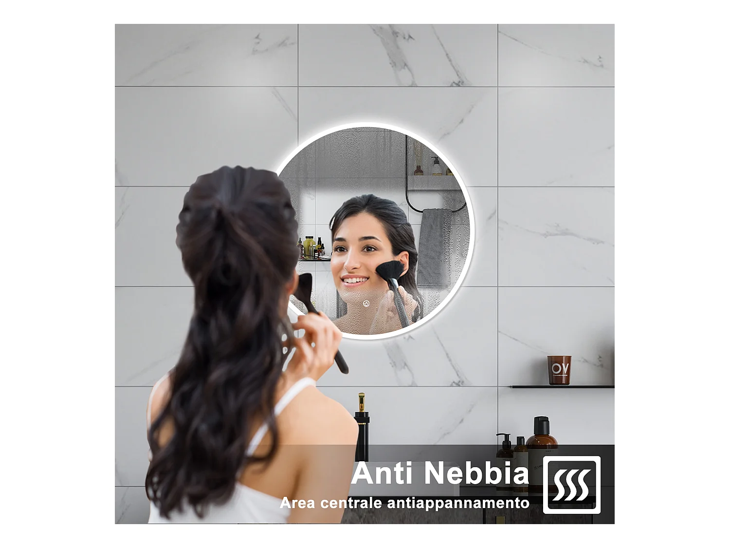 AICA Specchio da bagno rotondo con LED,Diametro 80cm,3 Temperature di Colore,Disappannamento,Infinitamente Dimmerabile