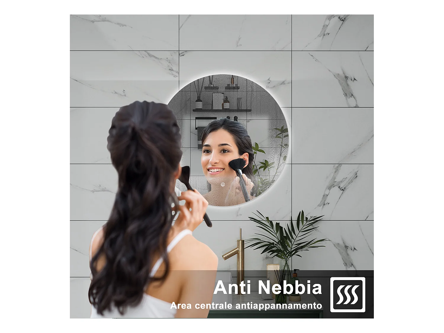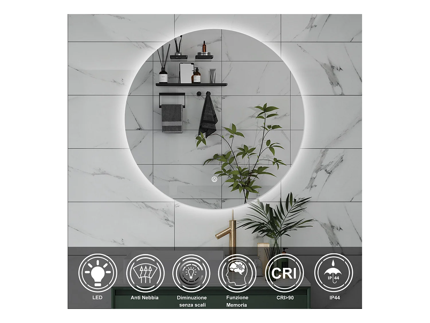 AICA SPECCHIO DA BAGNO ROTONDO CON LED 80 x 80 cm, antiappannamento, interruttore a sfioramento