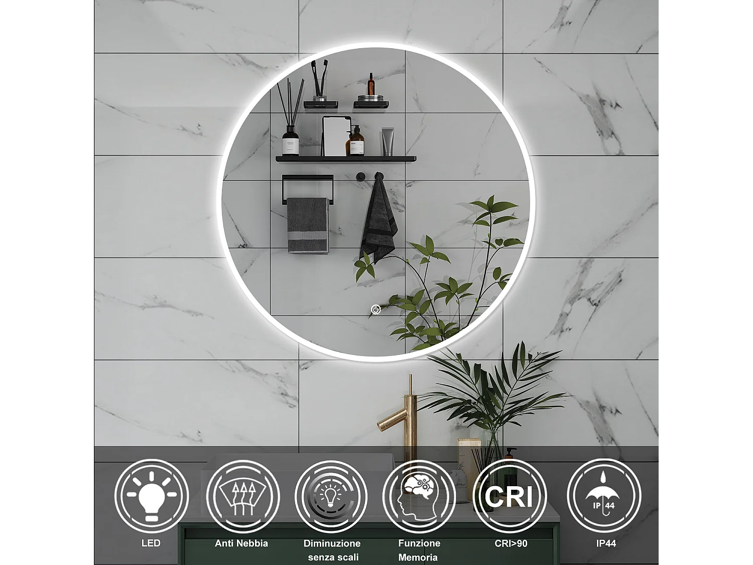 AICA SPECCHIO DA BAGNO ROTONDO CON LED 80 x 80 cm, antiappannamento, interruttore a sfioramento(Retroilluminato)