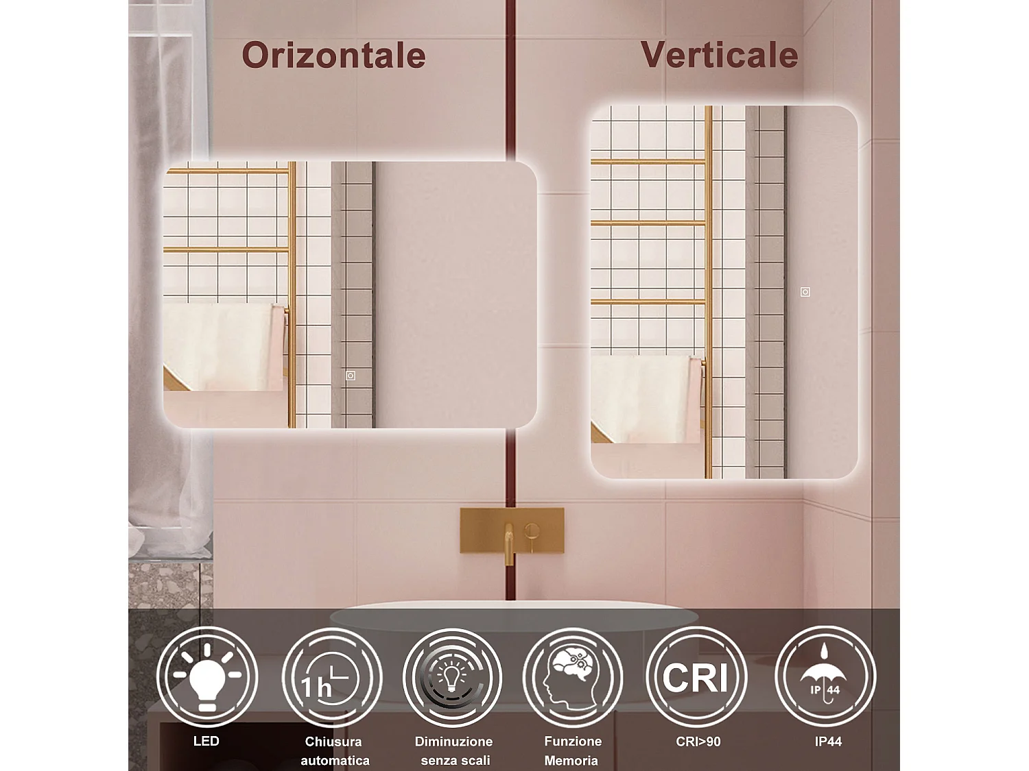 90 x 60 cm,AICA Specchio da Bagno LED con Luce,Regolabili,memoria,CRI>90,autospegnimento,interruttore touch