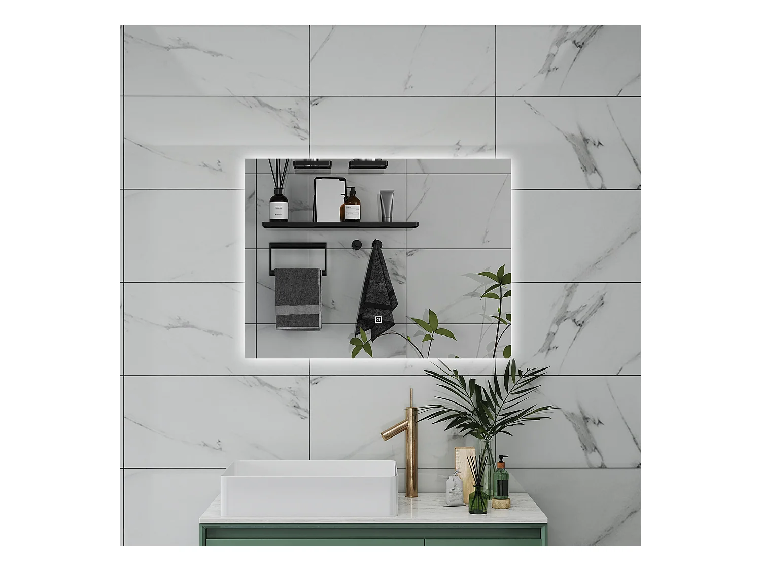 AICA Specchio da bagno 90 x 70 cm, dimmerabile, Funzione Memoria, antiappannamento, 3 colori