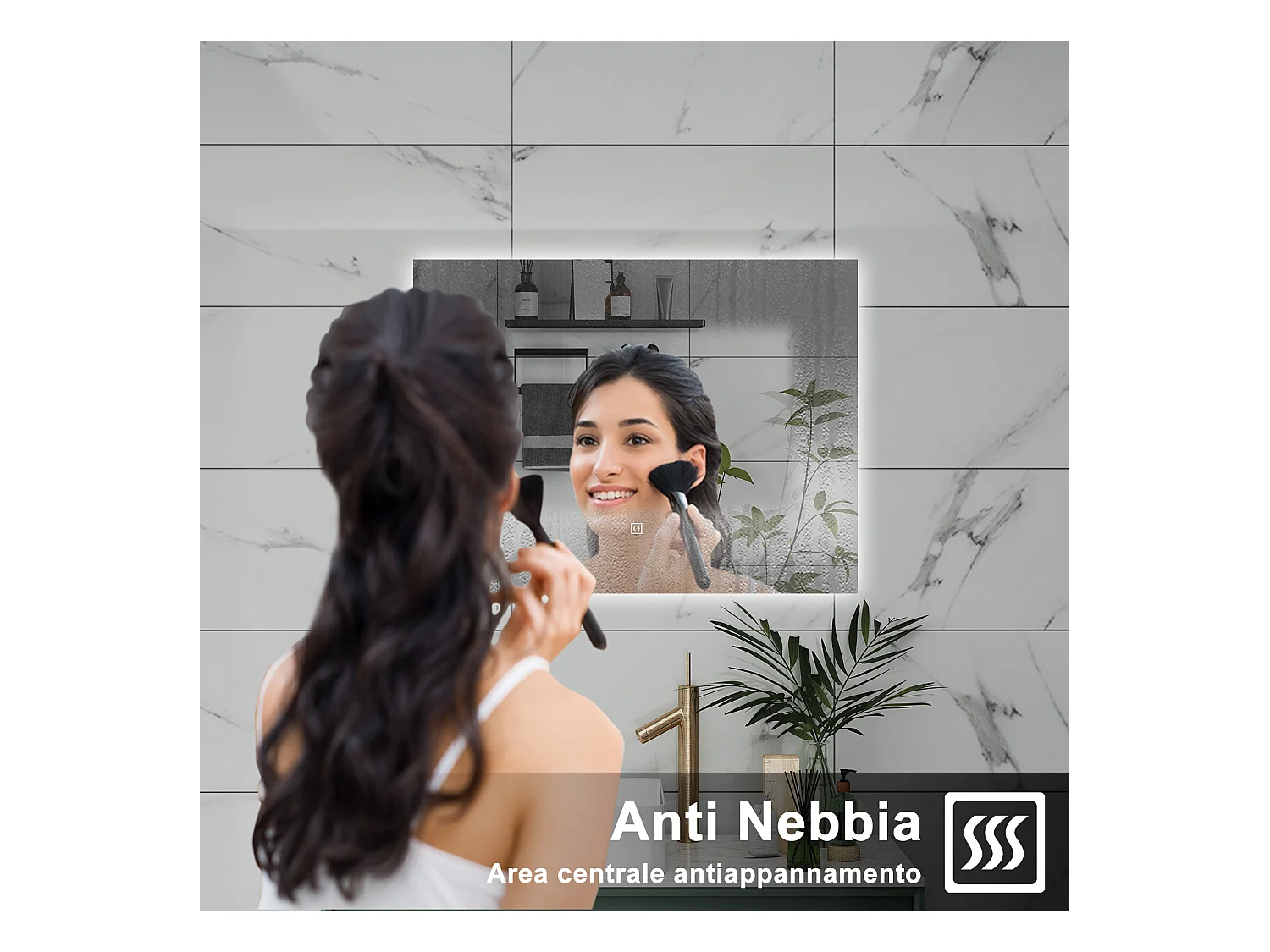 AICA Specchio da bagno 90 x 70 cm, antiappannamento, dimmerabile, interruttore touch, Funzione Memoria