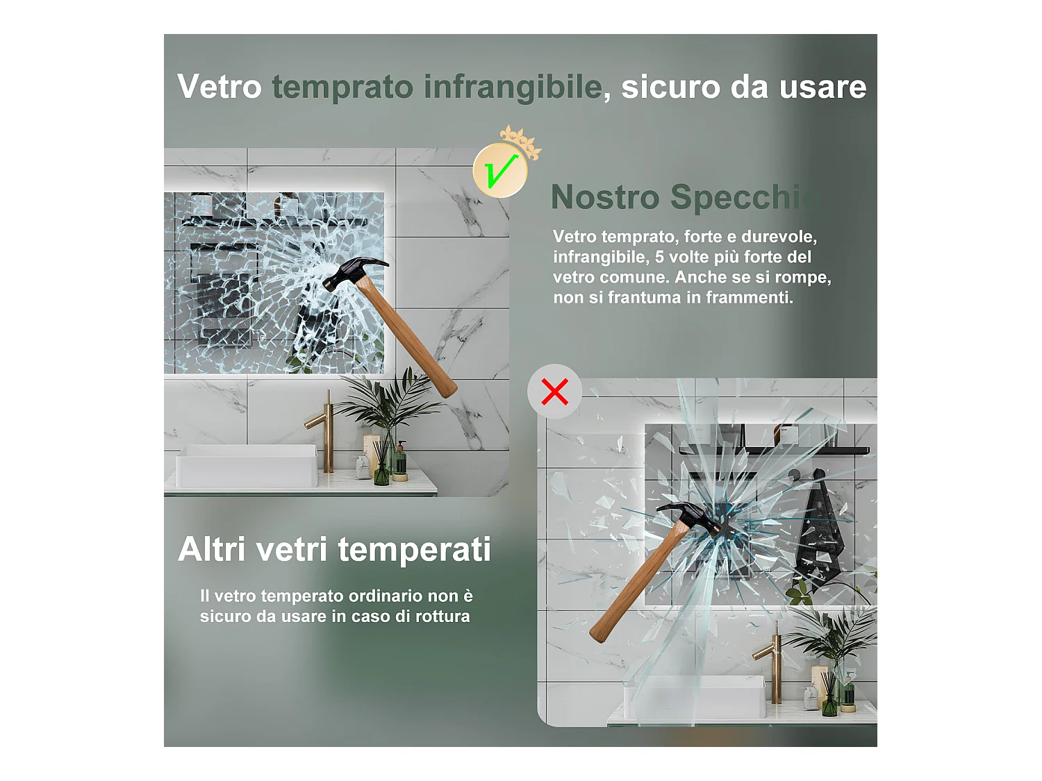 Aica Specchio da bagno a LED, 90x70cm, Disappannamento, Funzione Memoria, Infinitamente Dimmerabile