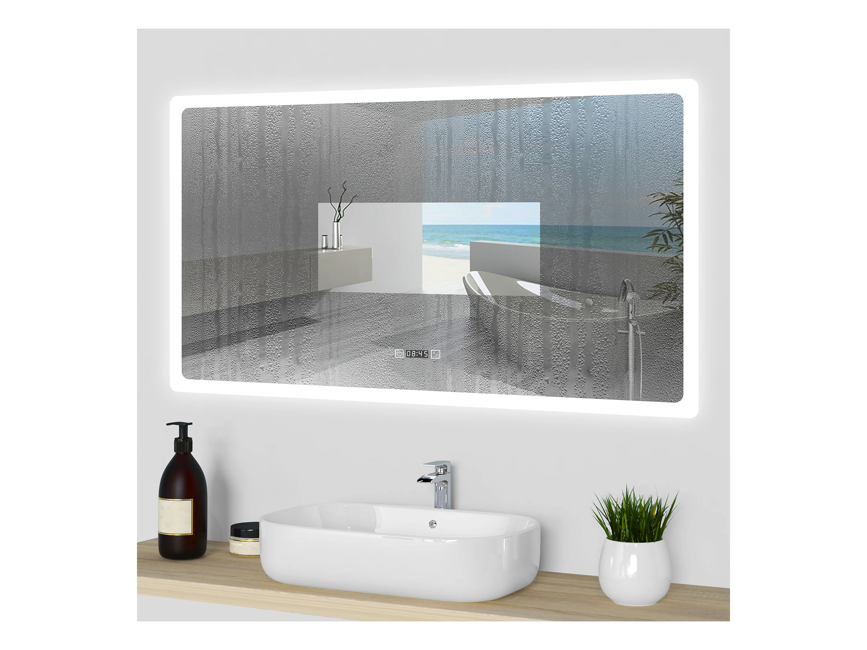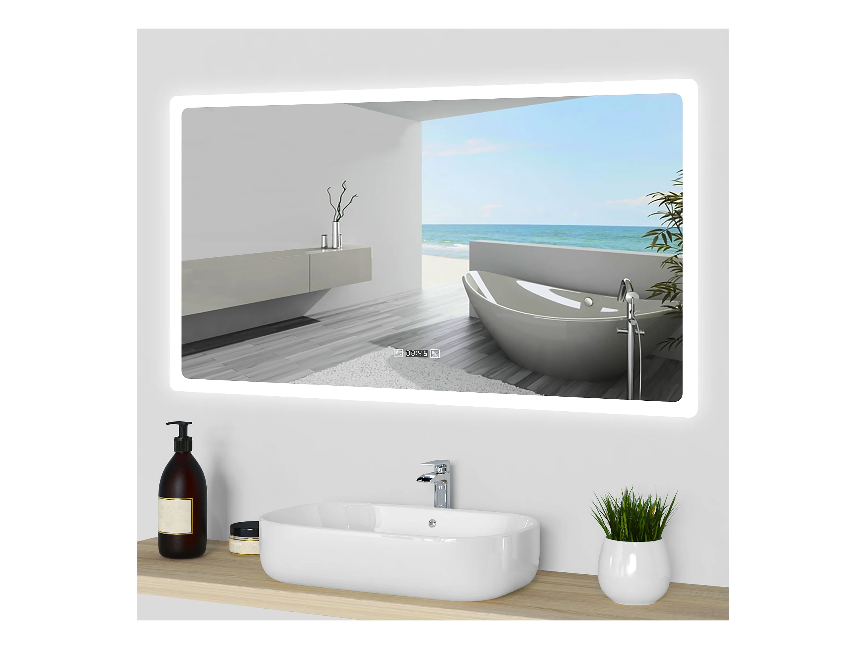 Aica Specchio da bagno a LED, 120x70cm, orologio, Disappannamento, 3 Temperature di Colore