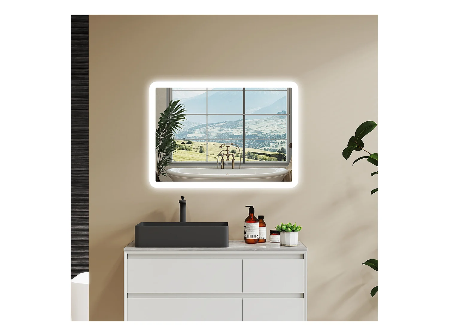 Specchio da bagno Rettangolare con 70x50cm,3 colori,Memoria, Antifog,Regorabile,Retroilluminato,doppio interruttore,