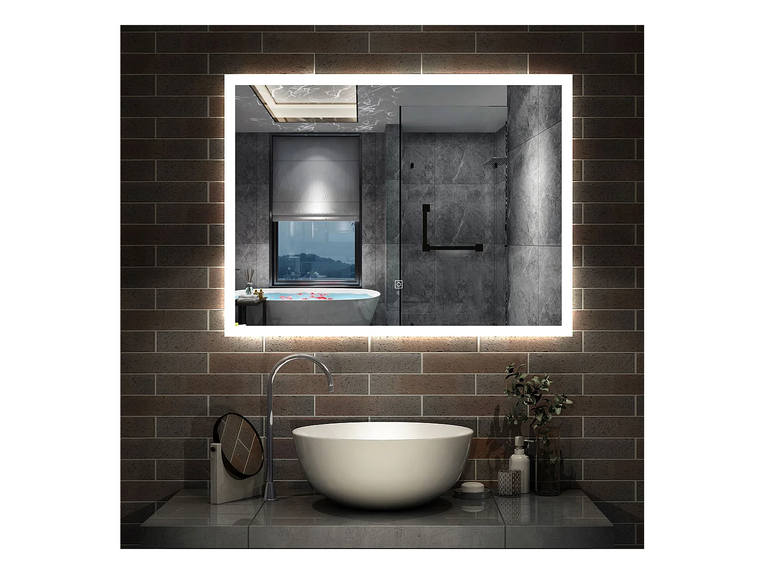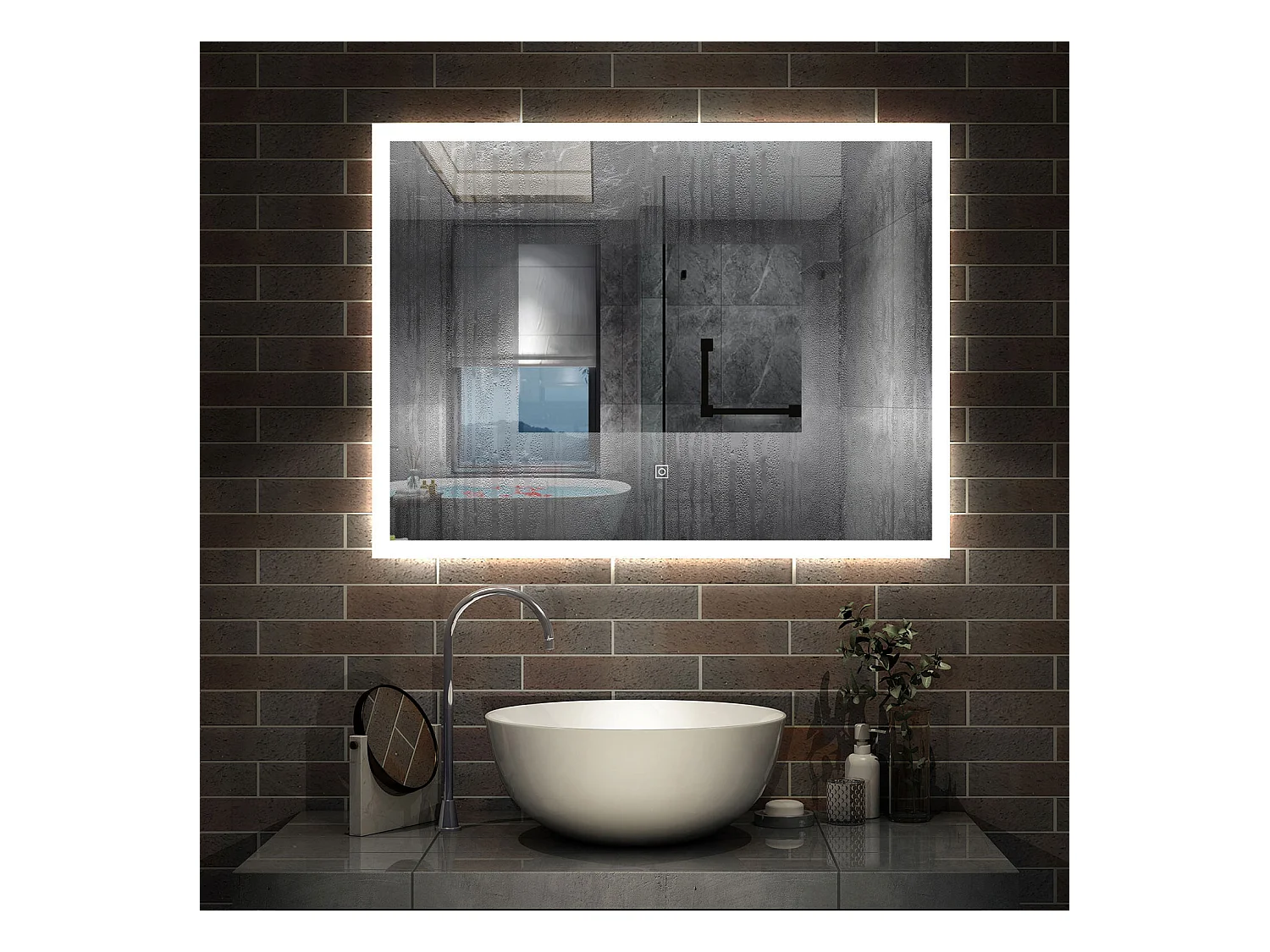 AICA Specchio da bagno rettangolare con LED, 50 x 70 cm, antiappannamento + memoria interruzione di corrente + 3 temperature di colore