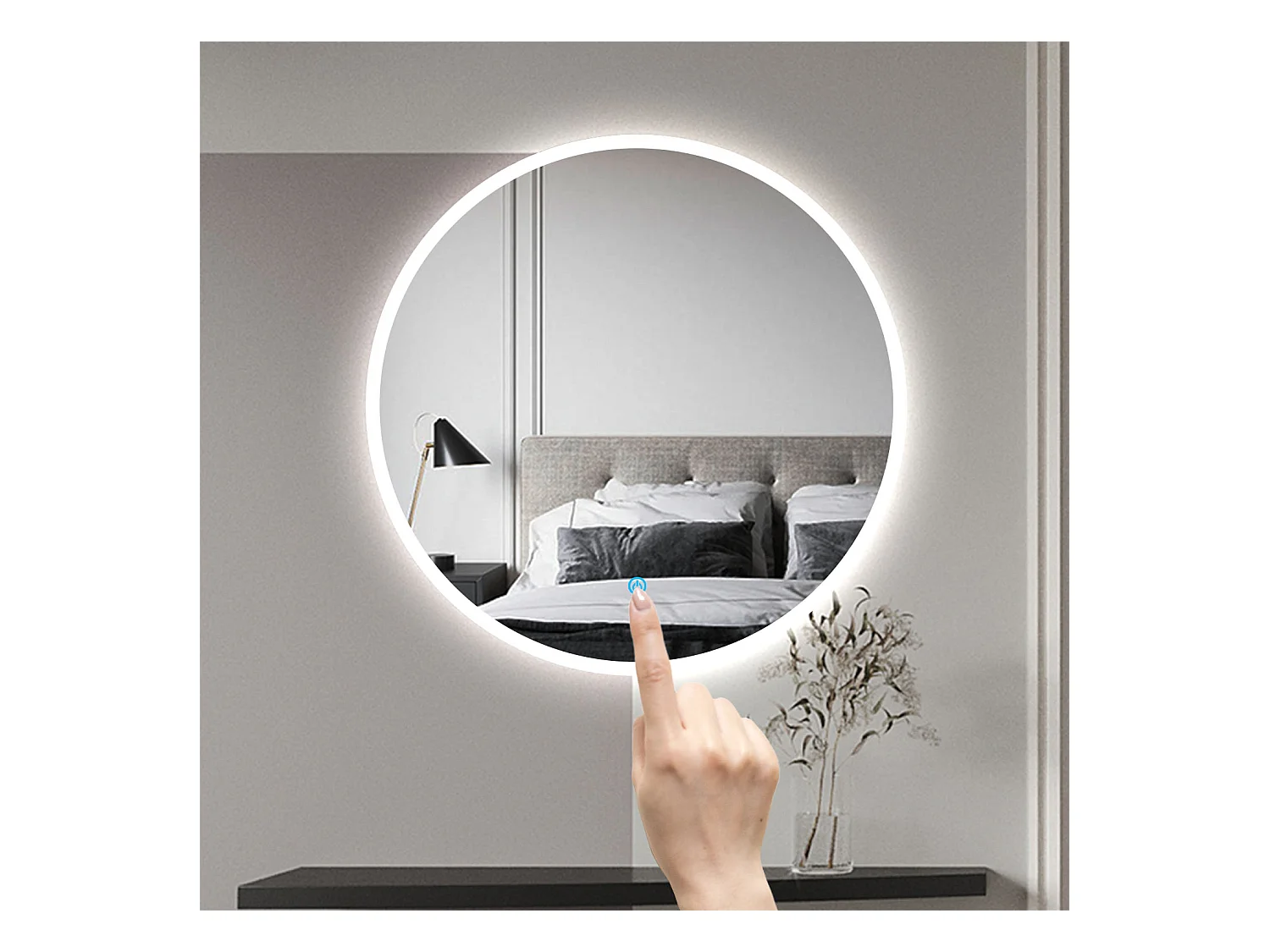 AICA Specchio da bagno rotondo con LED, diametro 70 cm, con antiappannamento + memoria di mancanza di corrente + dimmerabile all'infinito