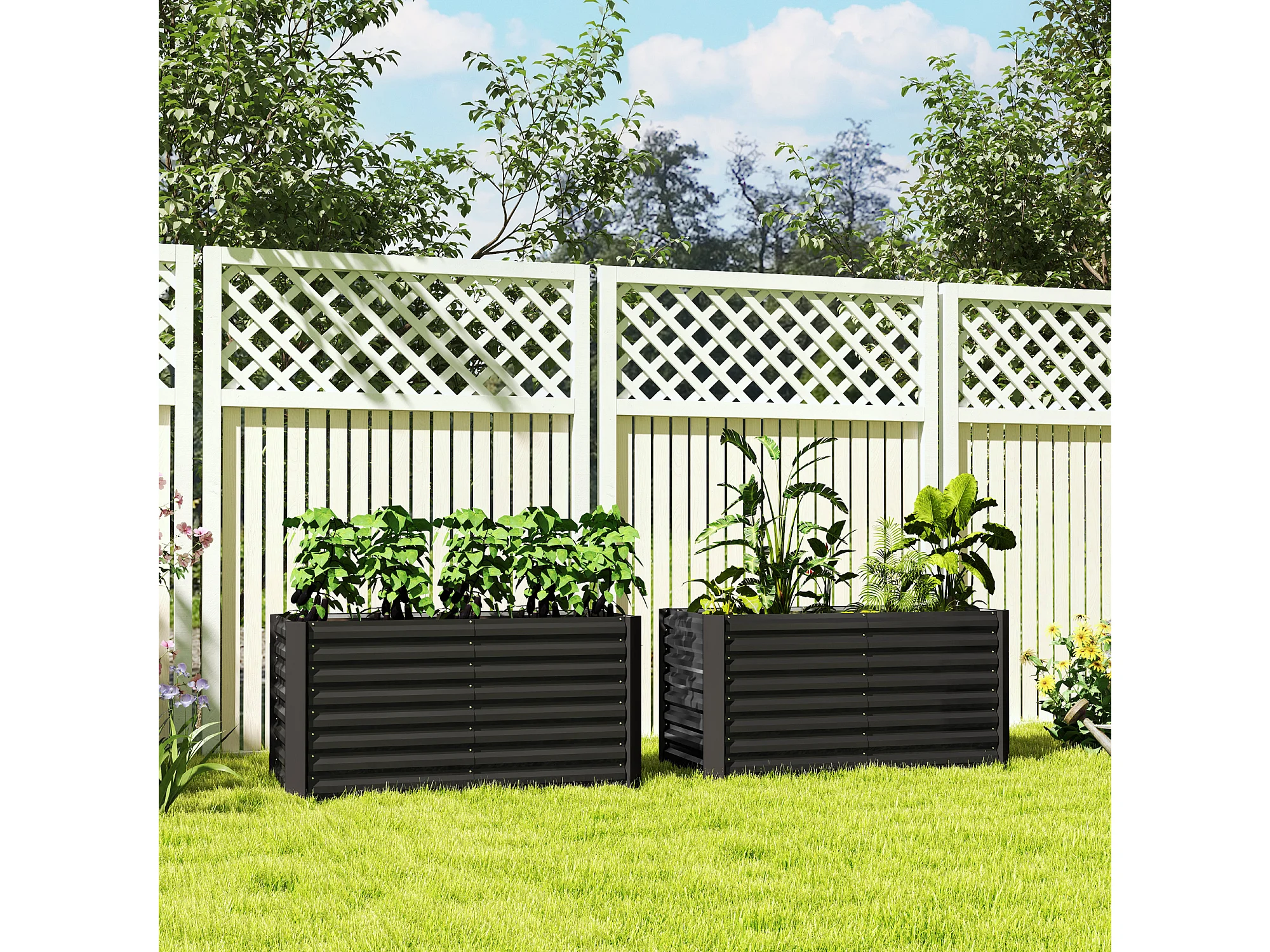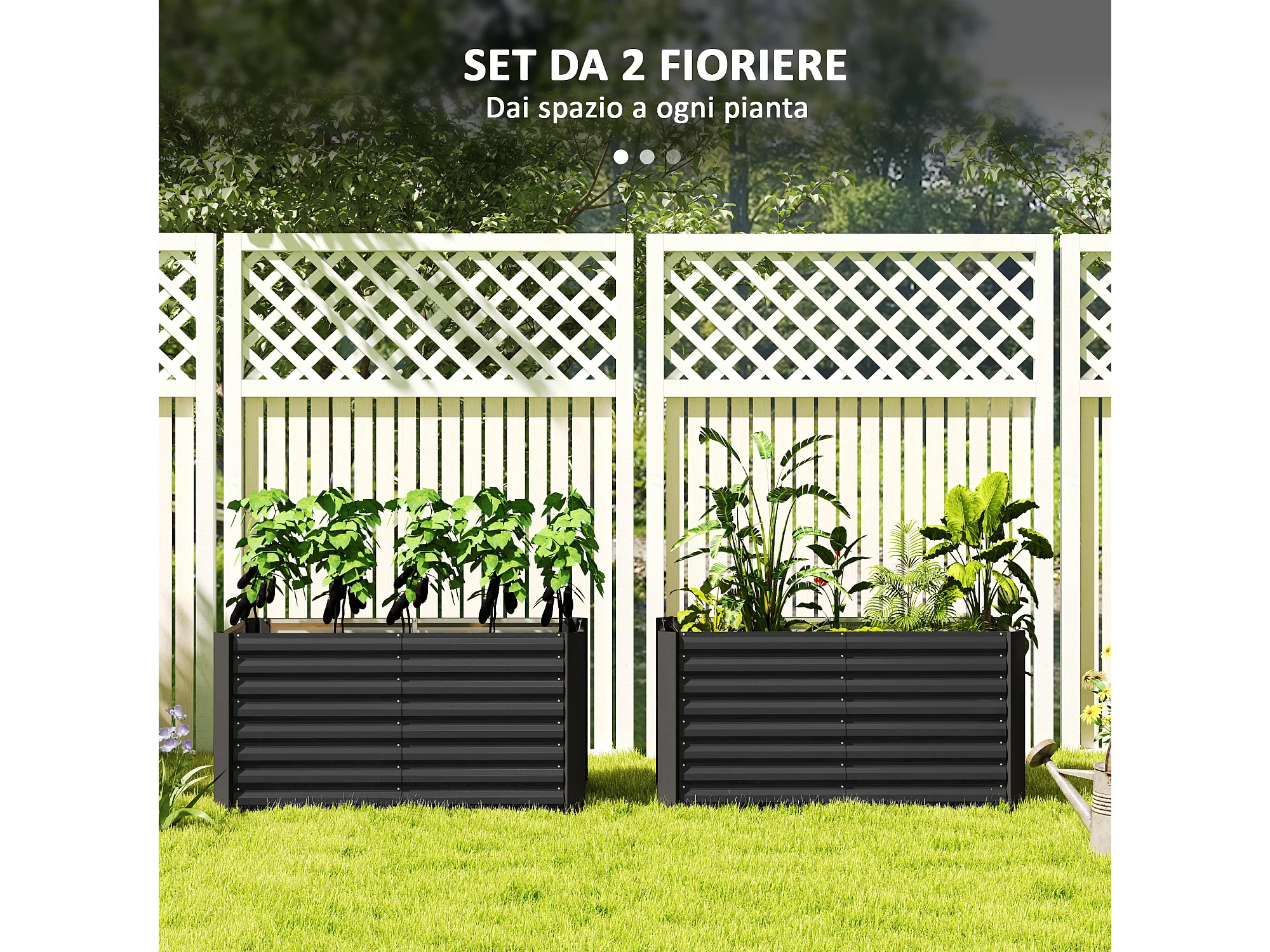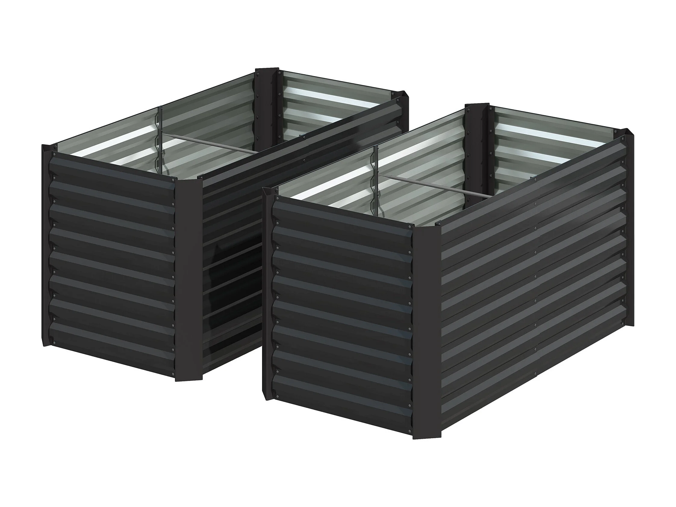 Aiuola rialzata set 2 pezzi rettangolari in acciaio grigio scuro