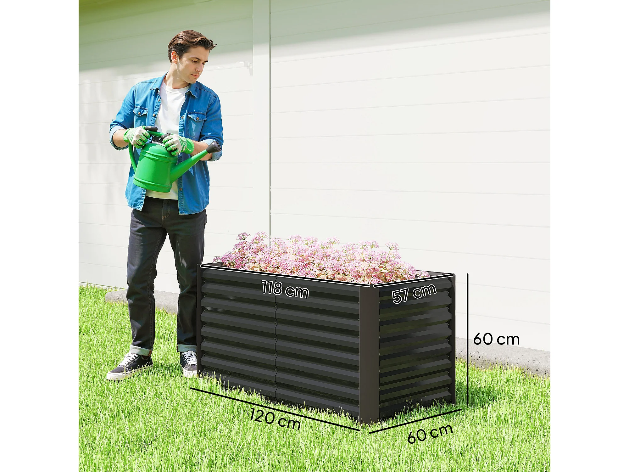 Aiuola rialzata modulabile e senza fondo in acciaio grigio scuro