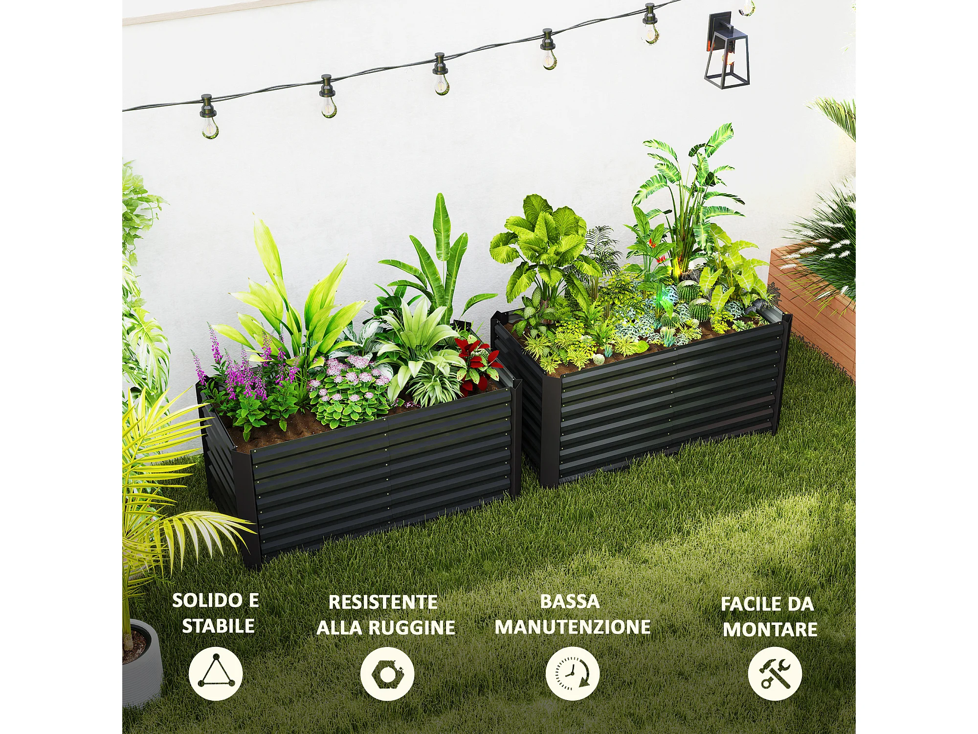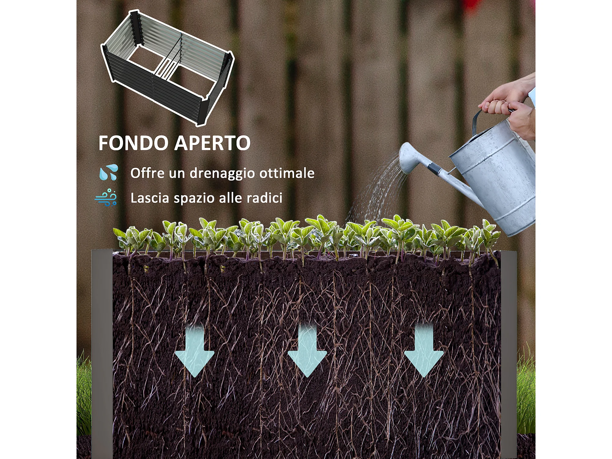Letto per orto in acciaio fondo aperto montaggio a scatto