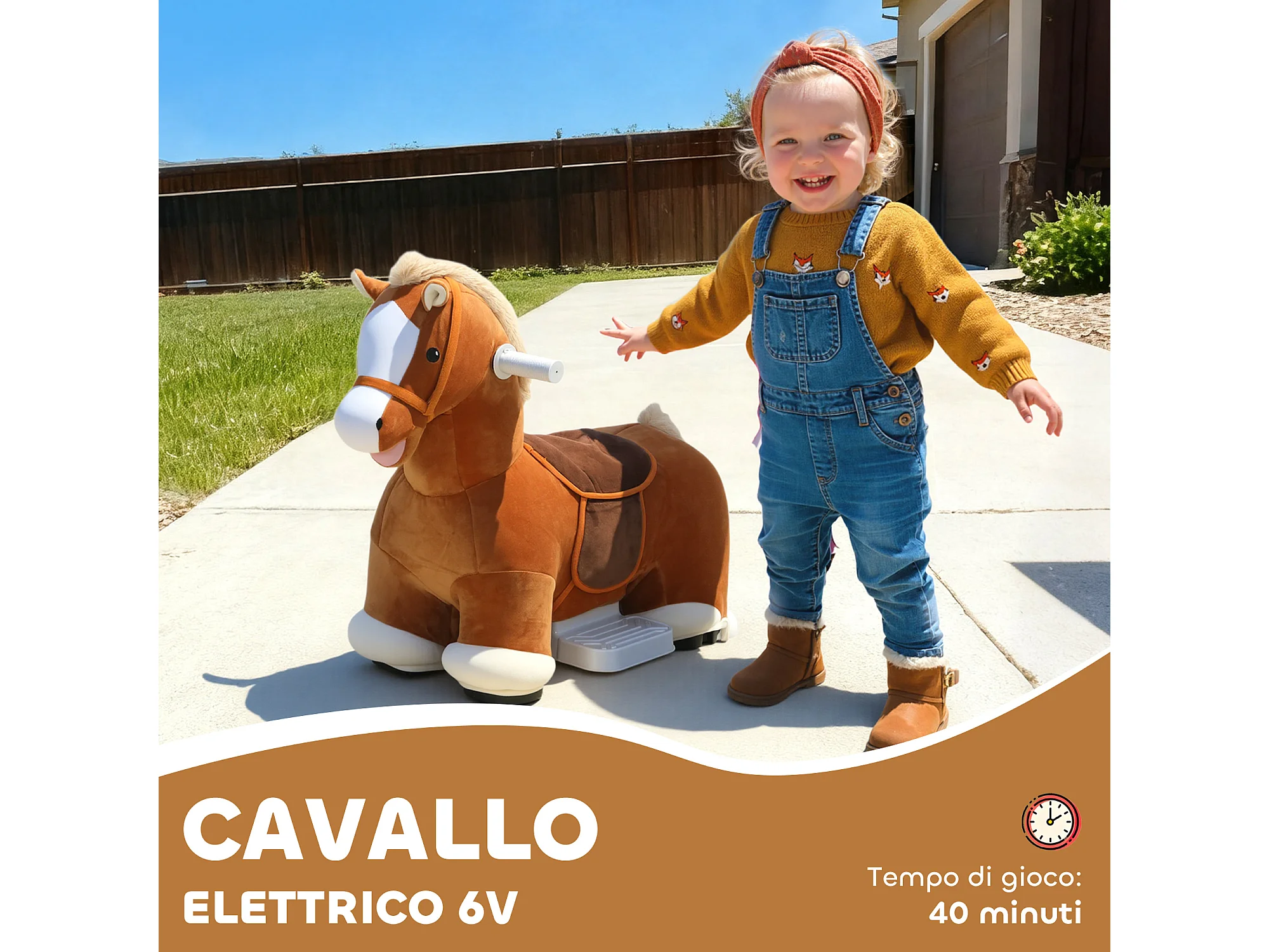 AIYAPLAY Cavallo Elettrico per Bambini 1.5-5 Anni con Pedali, Rotelle e Suoni Integrati, Cavallo Giocattolo in Peluche, PP, Metallo e ABS, 74x34x51 cm, Marrone