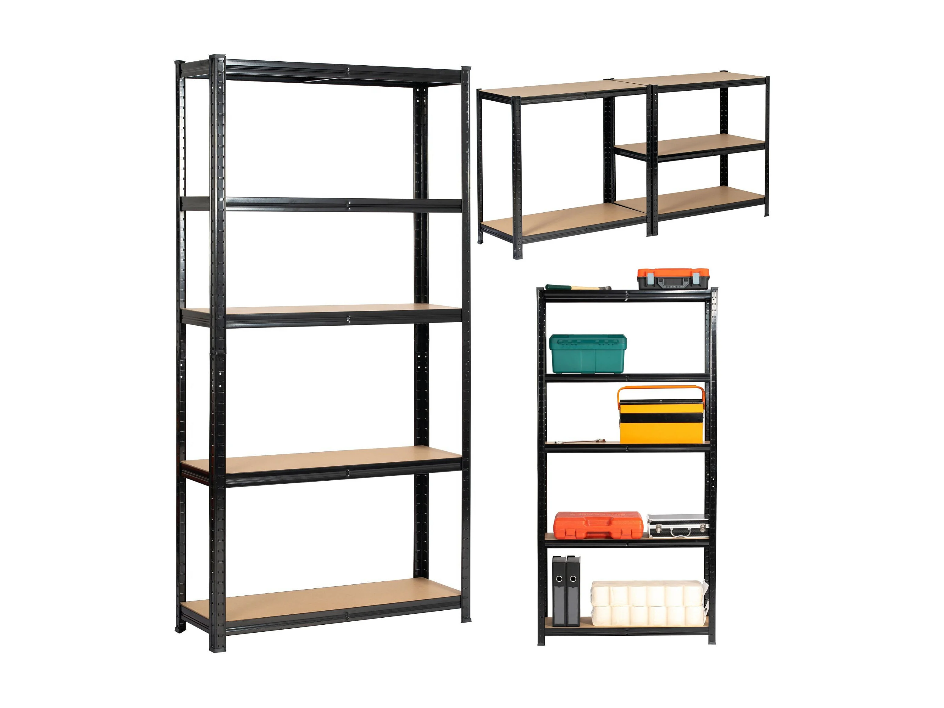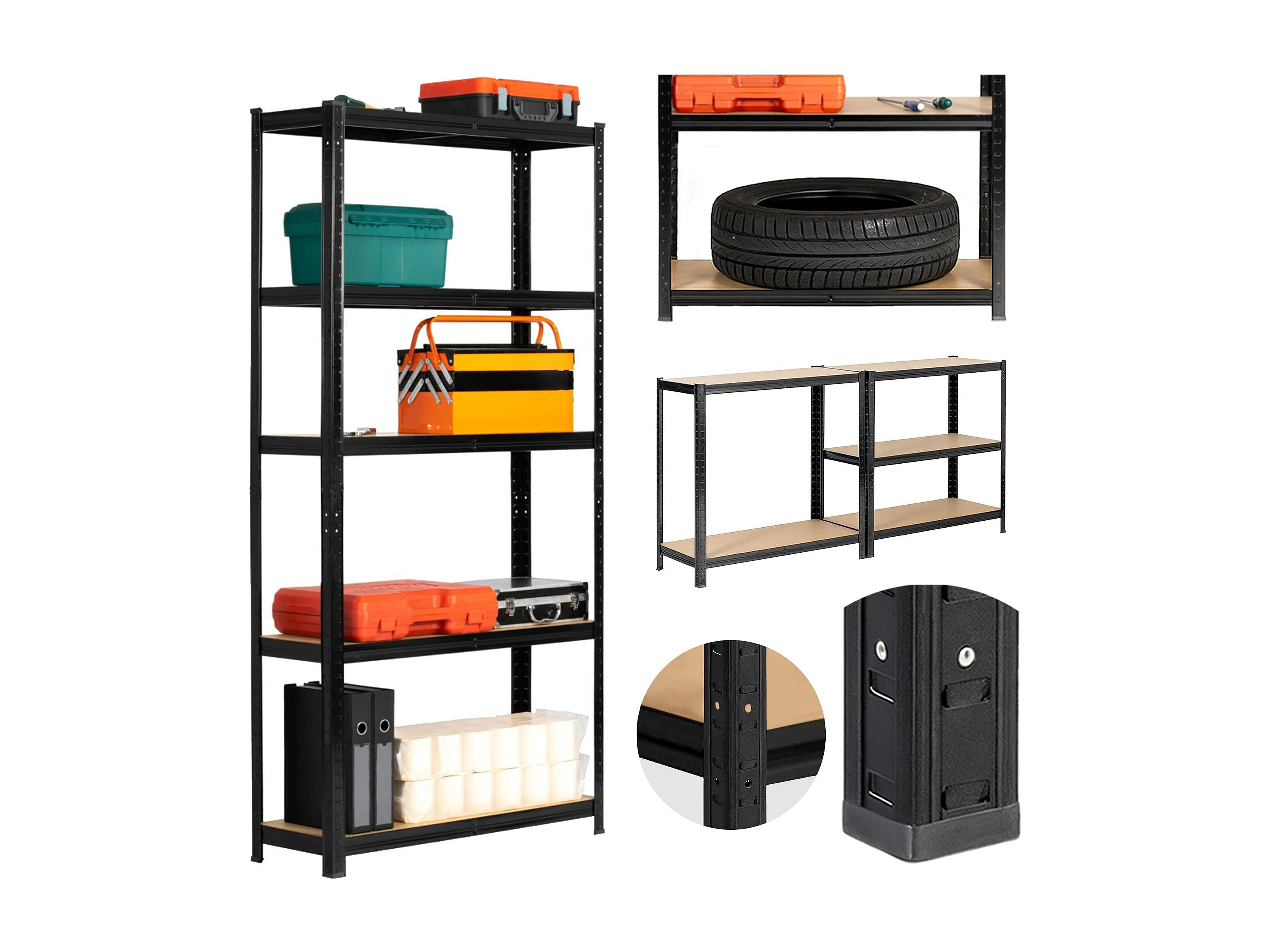 AKORD Scaffale garage in metallo acciao nero 5 ripiani in colore legno per carichi fino a 875kg 90x40x180 cm