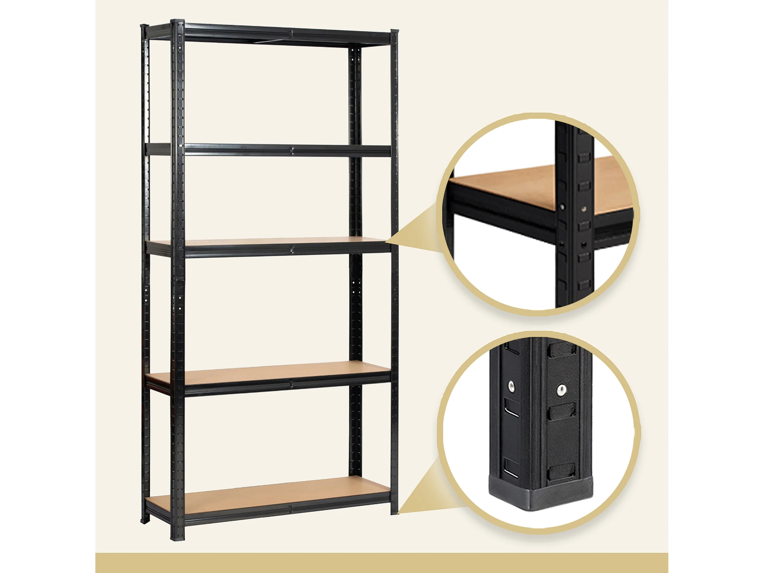 AKORD Scaffale garage in metallo acciao nero 5 ripiani in colore legno per carichi fino a 875kg 90x30x180 cm