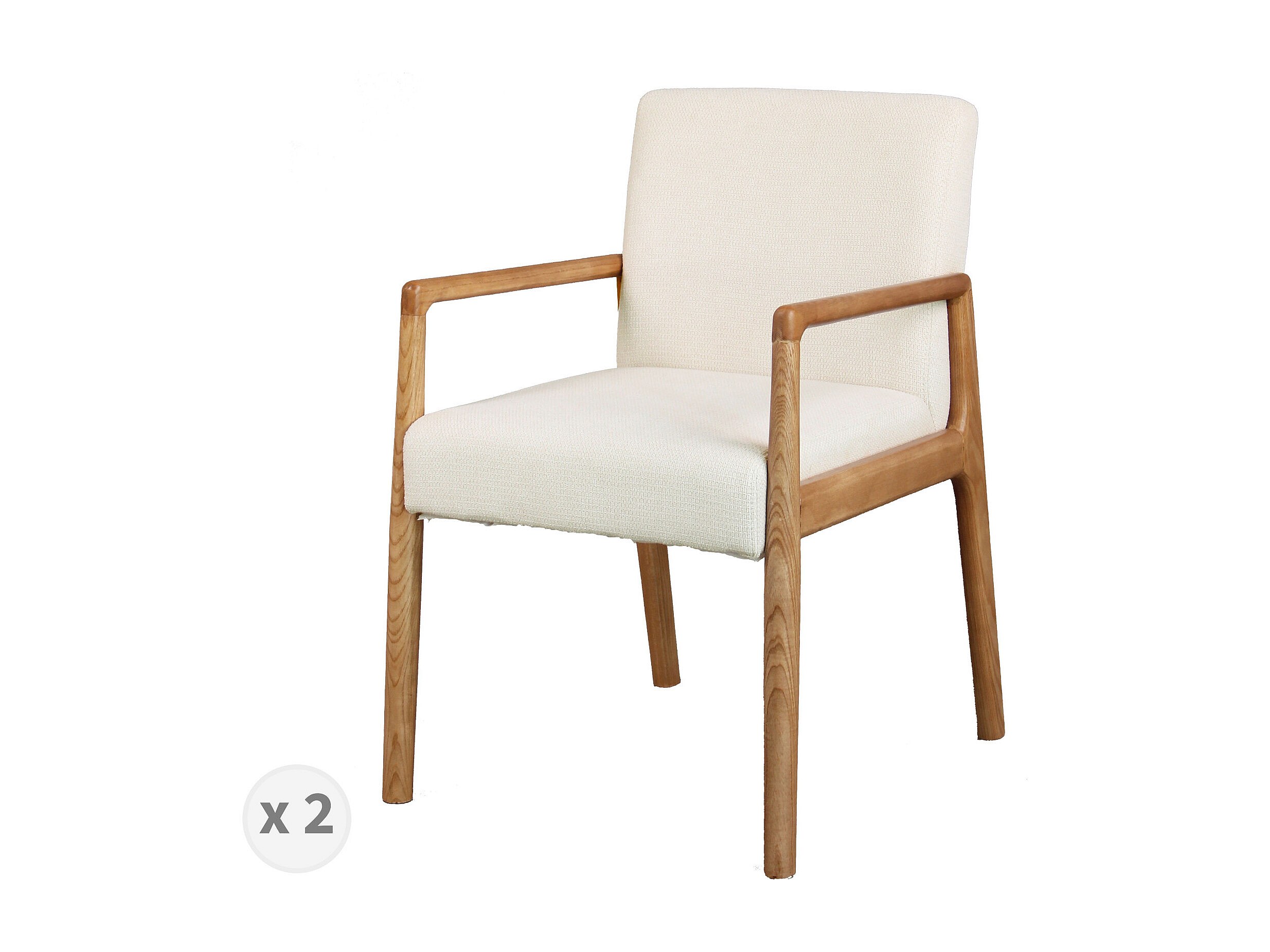 ALBAN-Poltrona da tavolo ecrù e frassino naturale (x2)