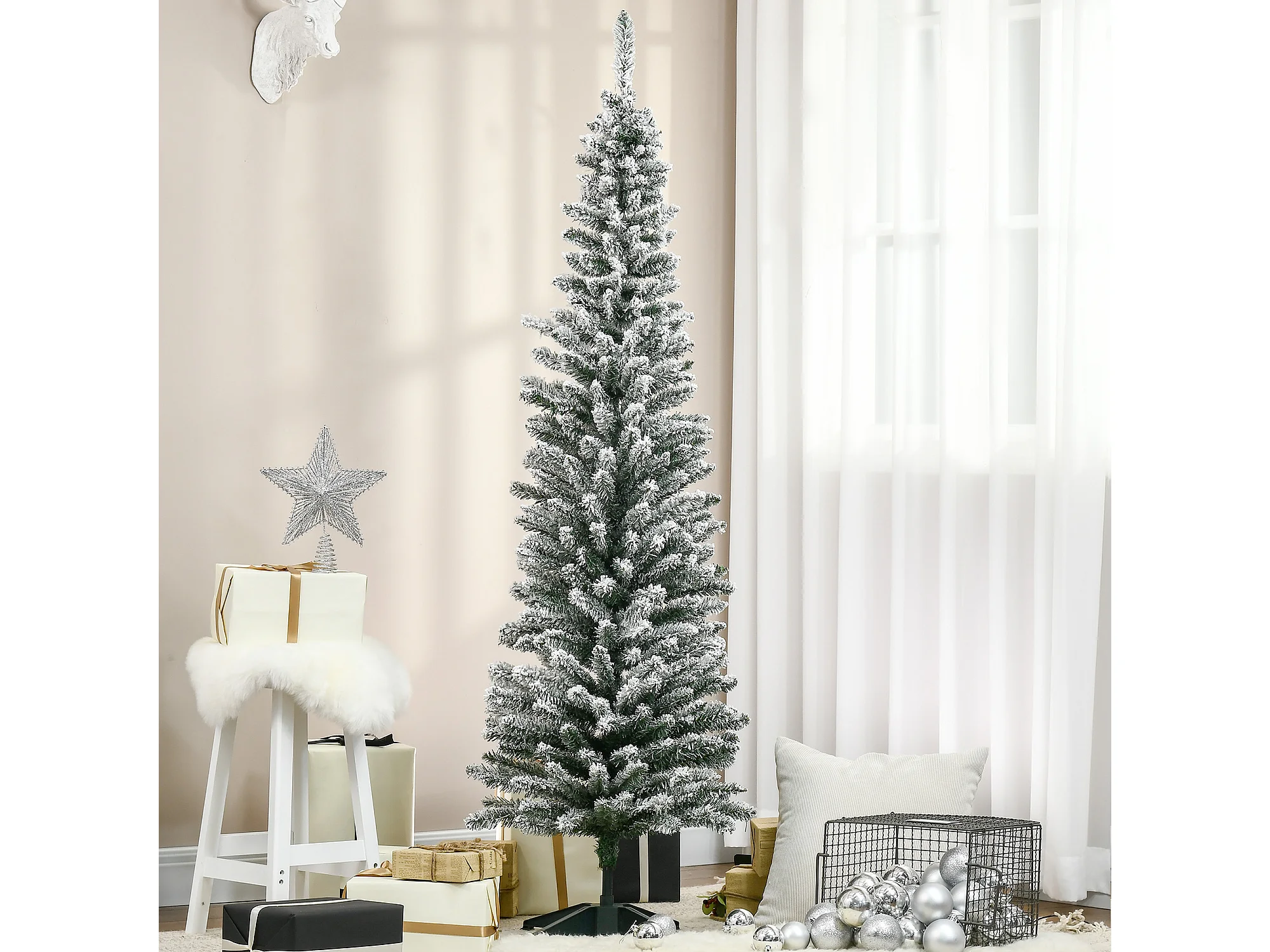 Albero di Natale Artificiale Sottile con Base Verde 210 cm PVC