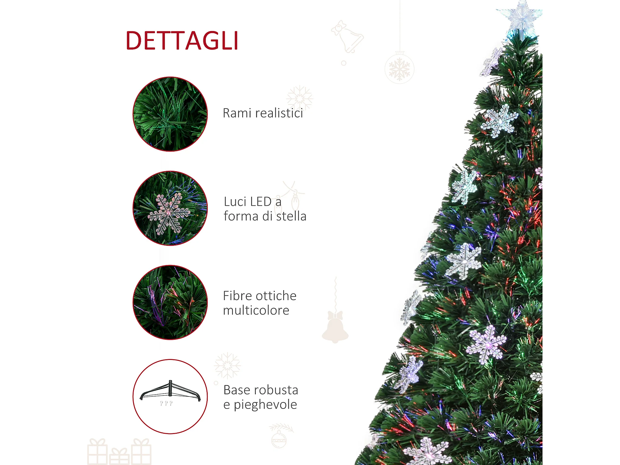 Albero di natale artificiale con fibre ottiche e led in pvc verde