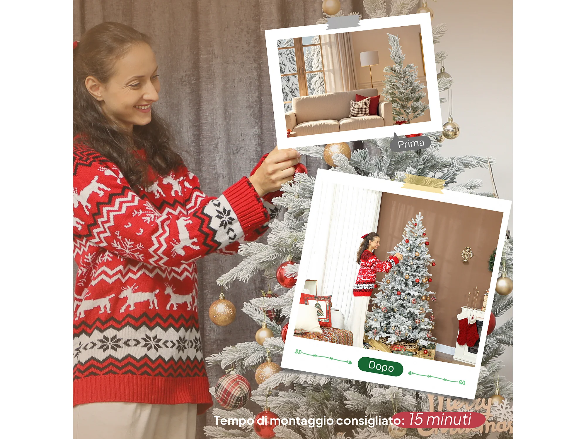 Albero di Natale Artificiale con 300 LED e Neve Floccata 210 cm