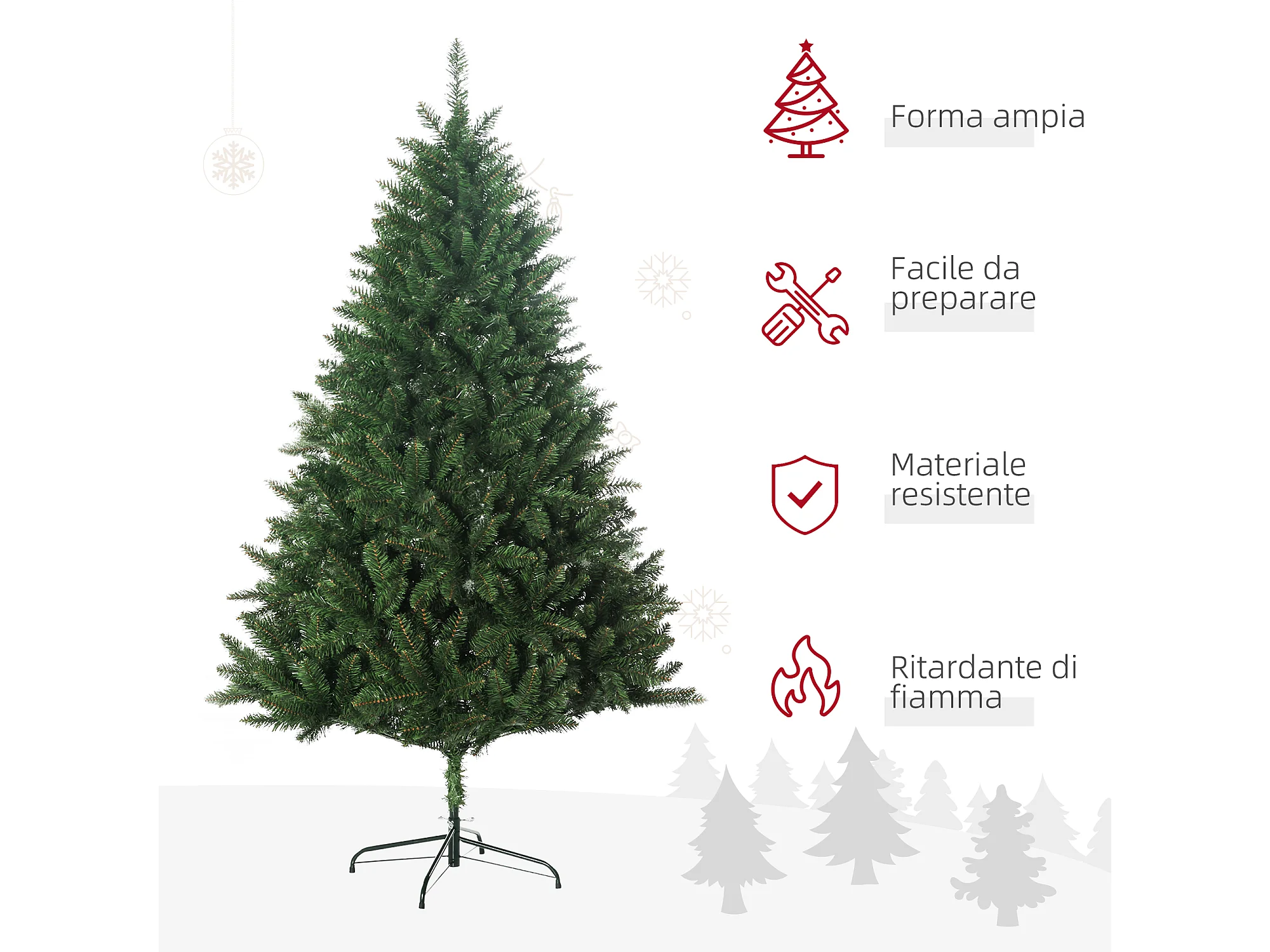 Albero di natale artificiale alto 180 cm e base in metallo pieghevole
