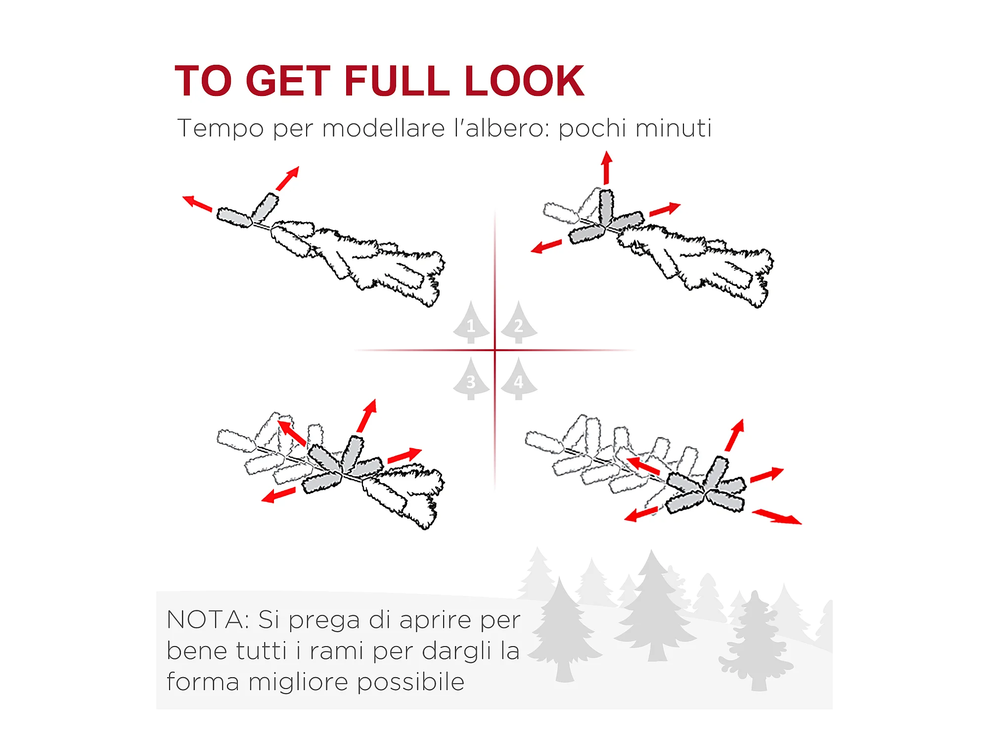 HOMCM Albero di Natale 180cm Artificiale con Base Pieghevole 380 Rami